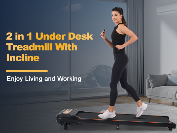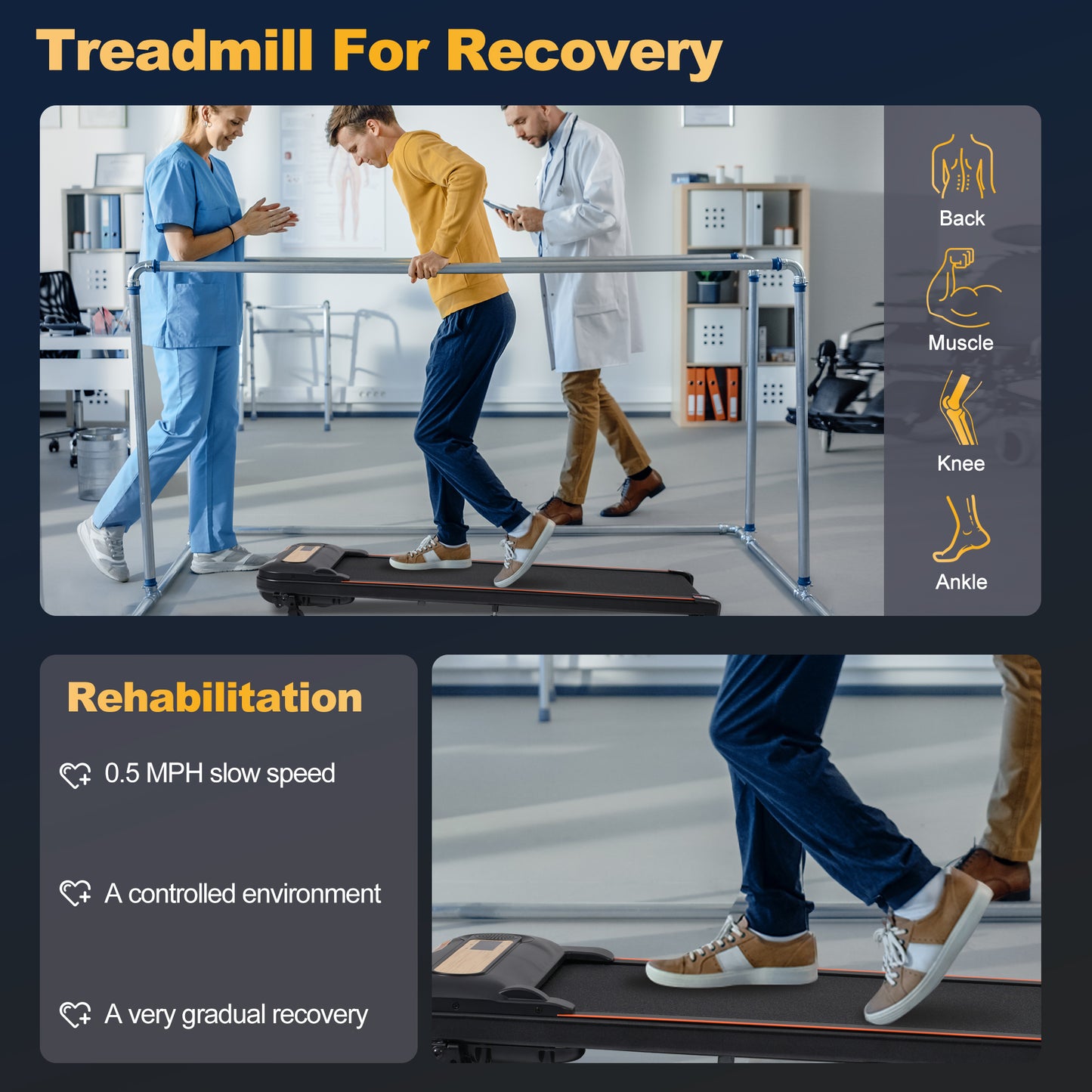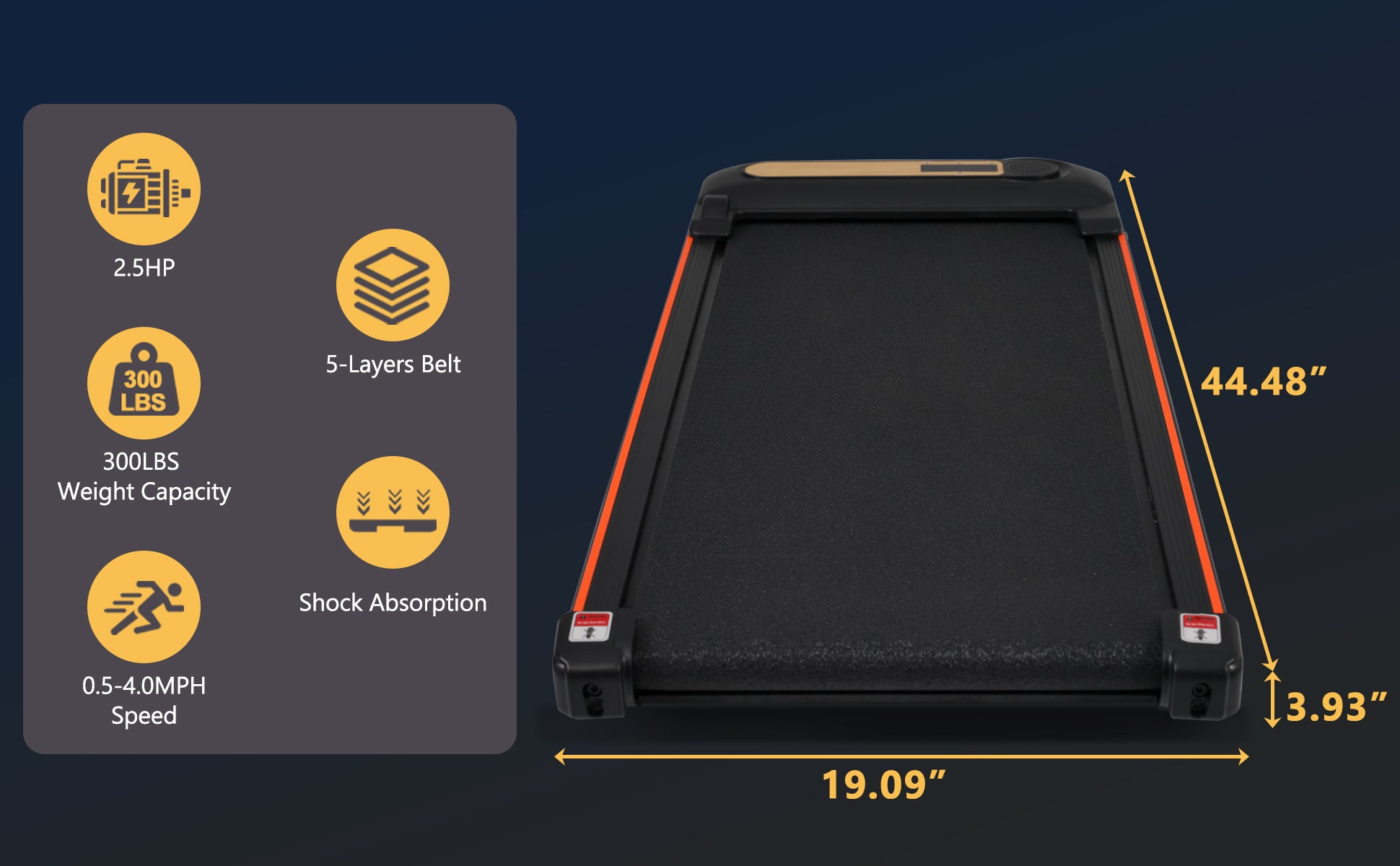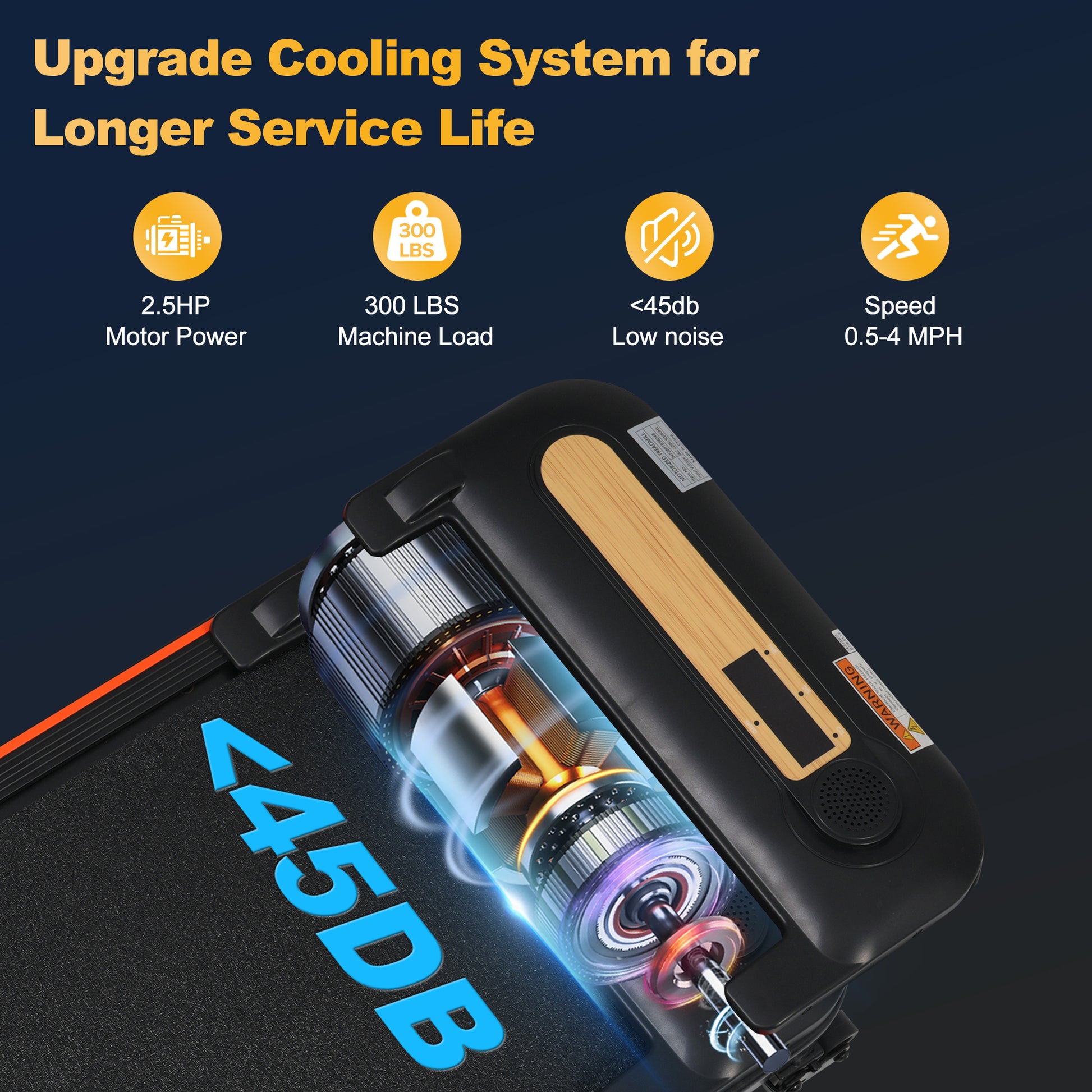 Wood Grain Decoration Walking Pad Under Desk Treadmill for Home Office -2.5HP Walking Treadmill With Incline 0.5-4MPH 300LBS Capacity Treadmill for Walking Running - Remote Control