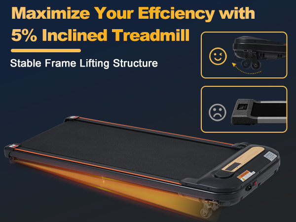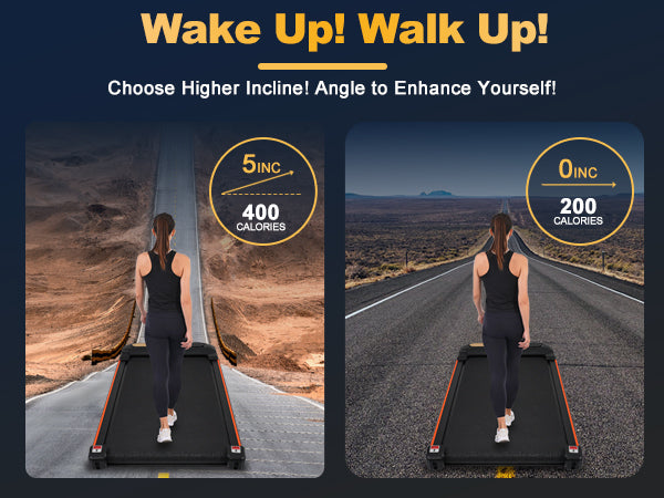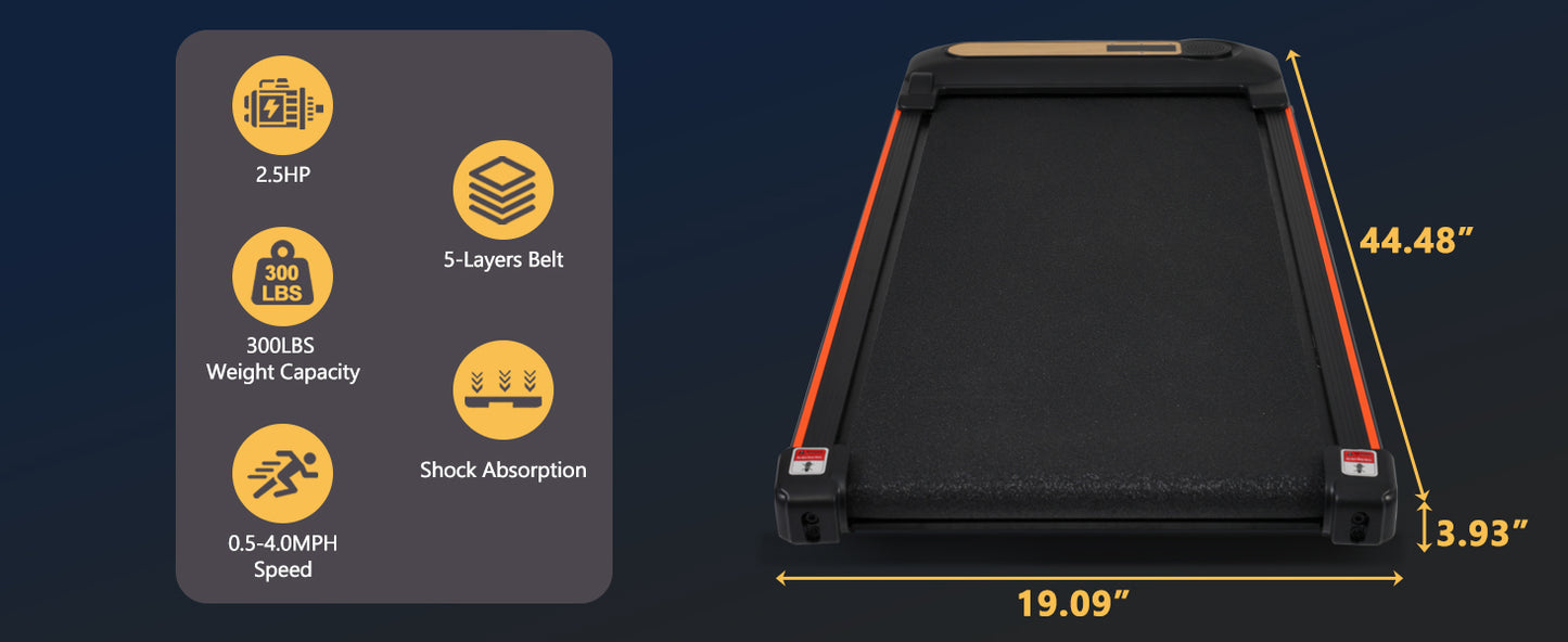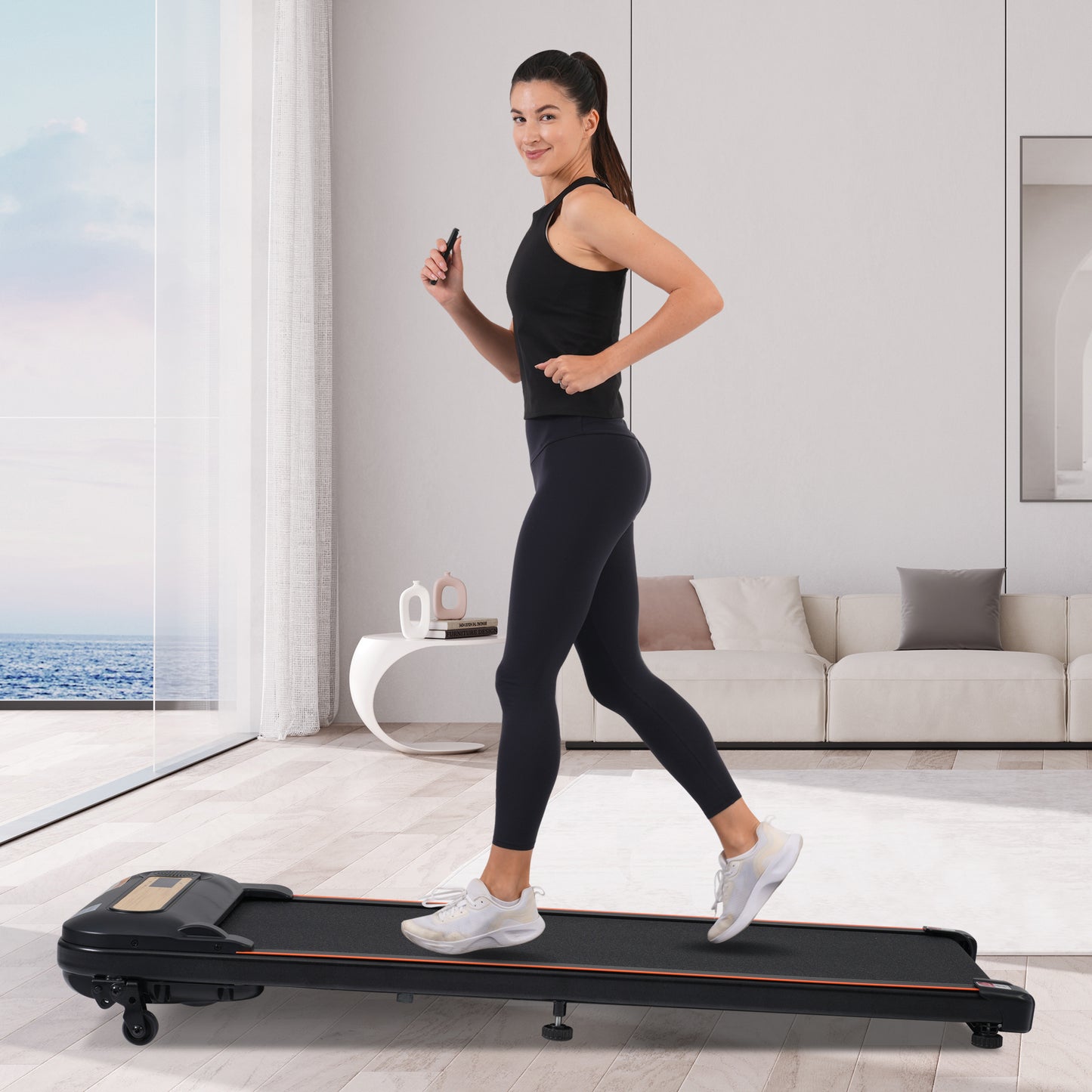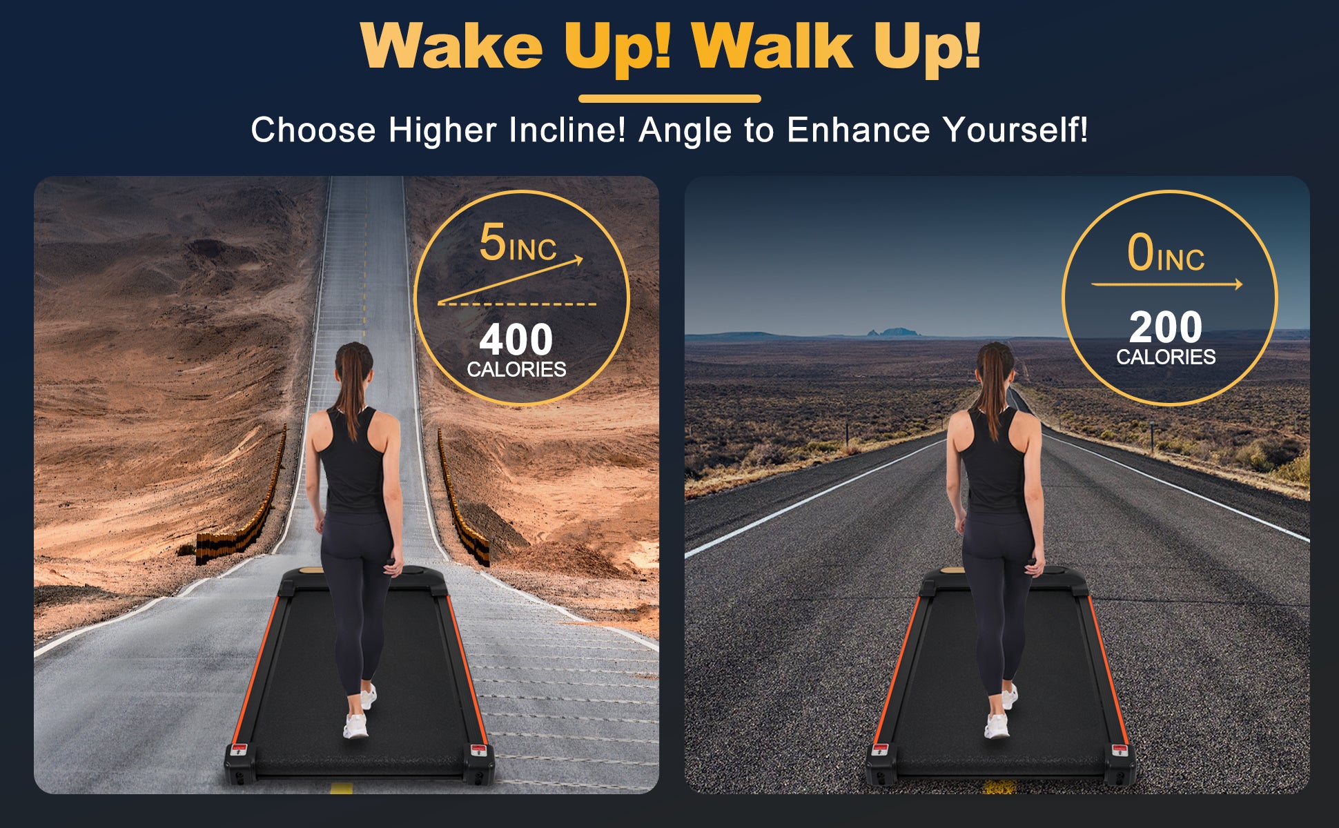 Wood Grain Decoration Walking Pad Under Desk Treadmill for Home Office -2.5HP Walking Treadmill With Incline 0.5-4MPH 300LBS Capacity Treadmill for Walking Running - Remote Control