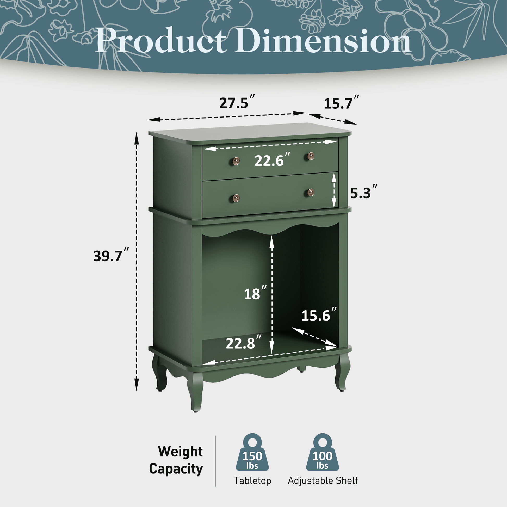 Pet Storage Cabinet , 2 Drawers and Semi-Open Space, Hidden Cat Litter Box, Multi-Functional End Table-Green