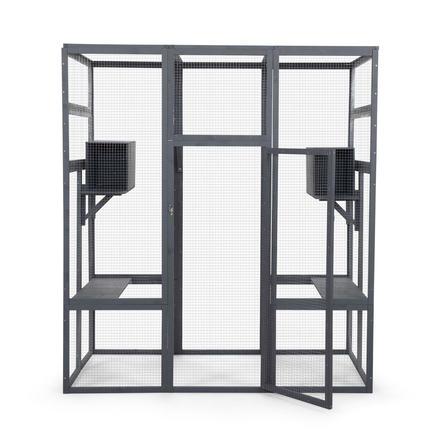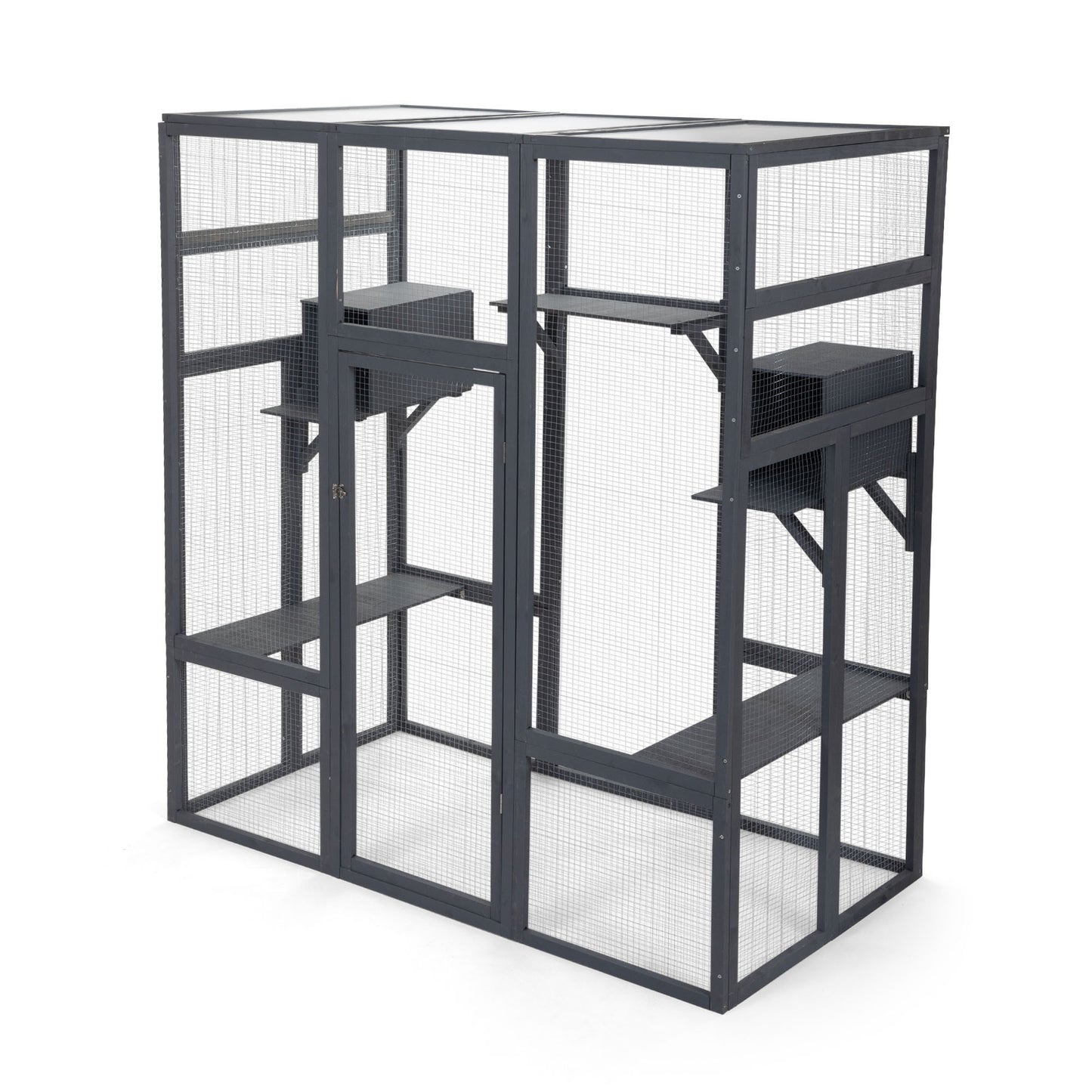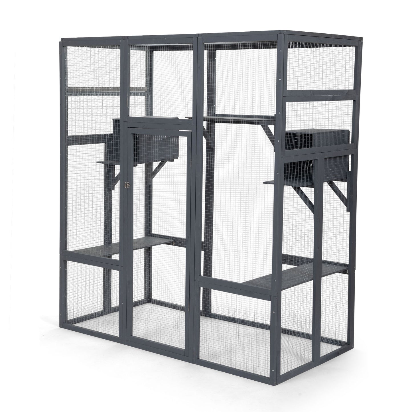 - 【Roomy Space】: Boasting spacious space, the multi-tier cat enclosure enables your cats to play on cat perches, sleep in the condos or relax.