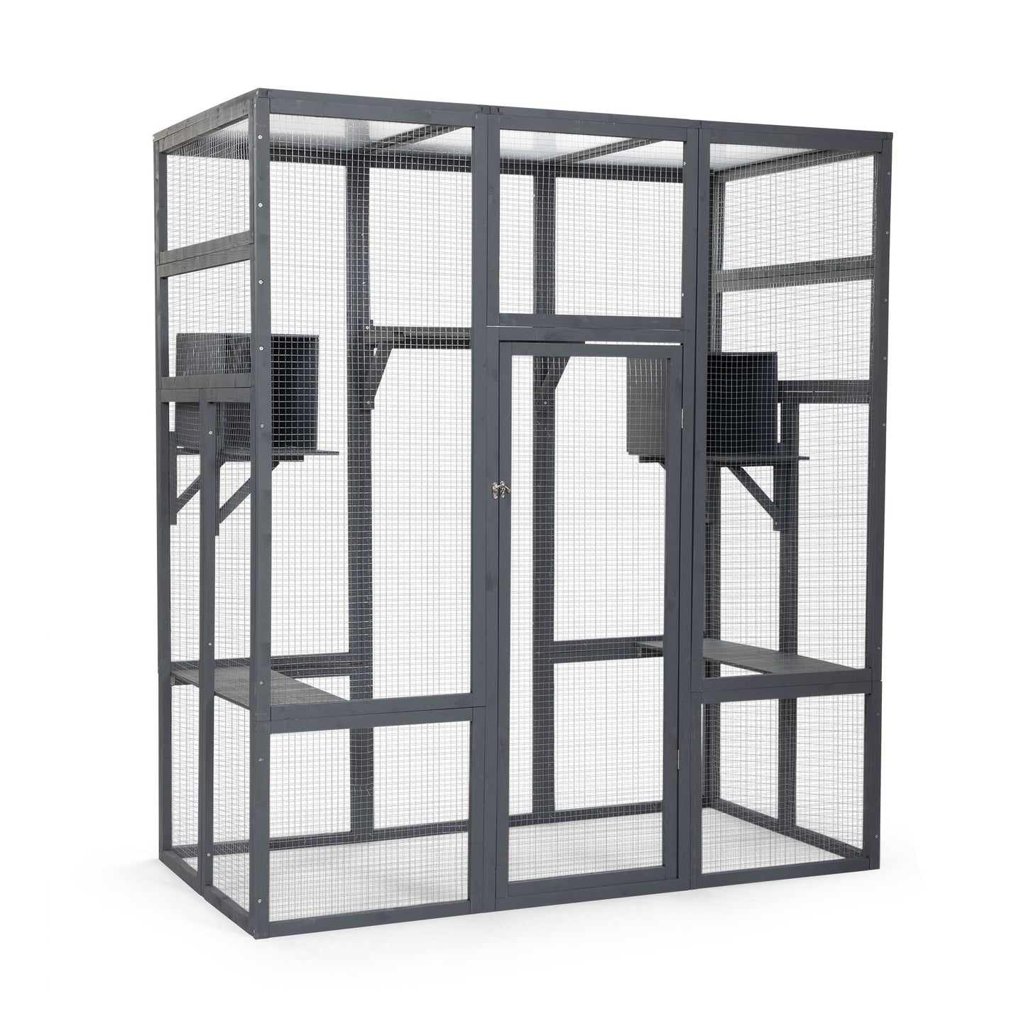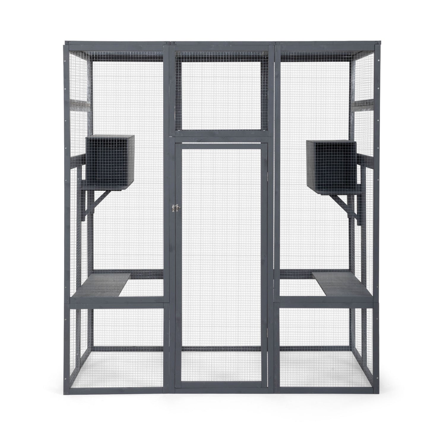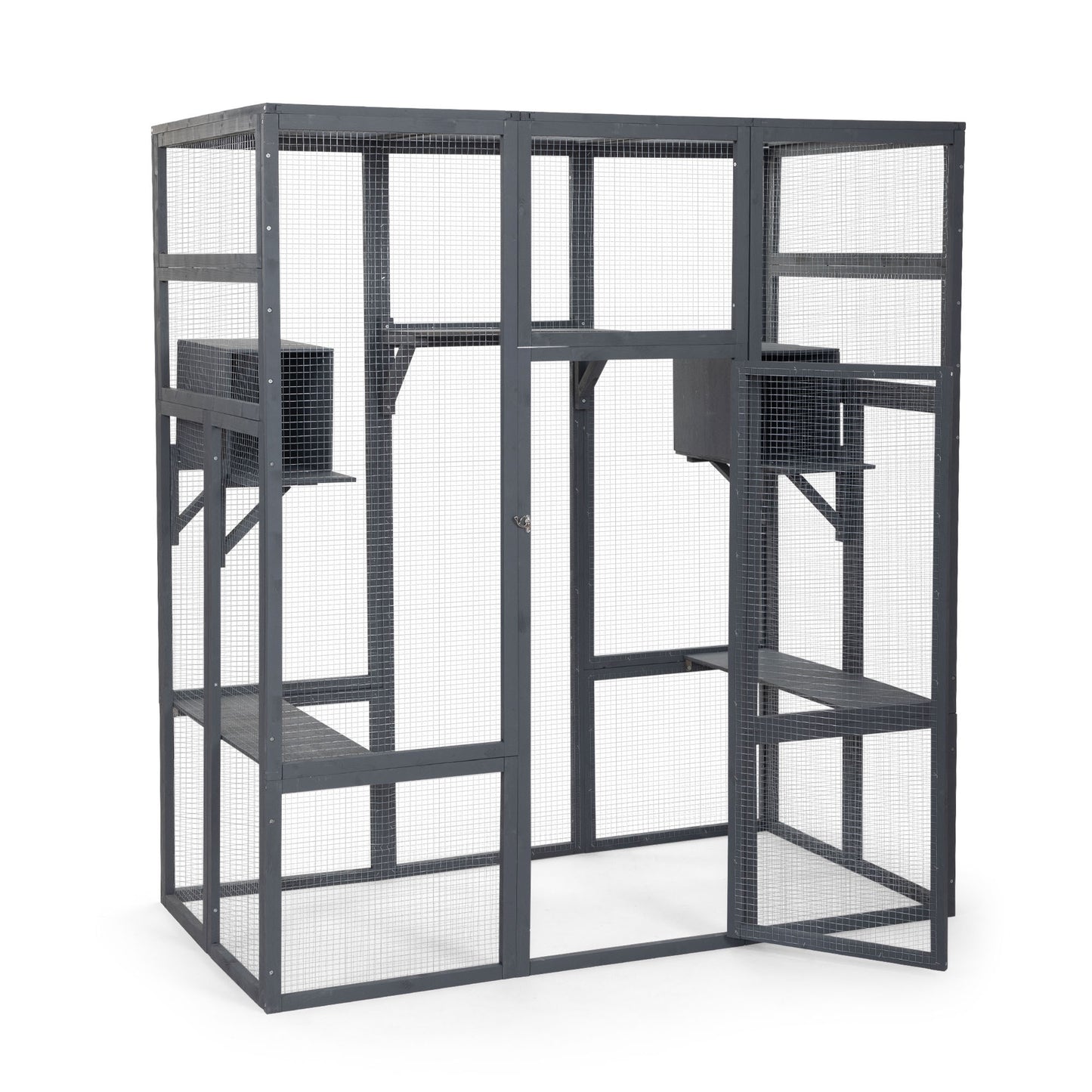 - 【Roomy Space】: Boasting spacious space, the multi-tier cat enclosure enables your cats to play on cat perches, sleep in the condos or relax.