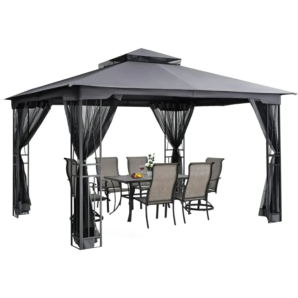 10 X 12 FT Outdoor Patio Gazebo with Ventilation Double Roof, Outdoors Gazebos with Mosquito Netting, Outdoor Patios Gazebo