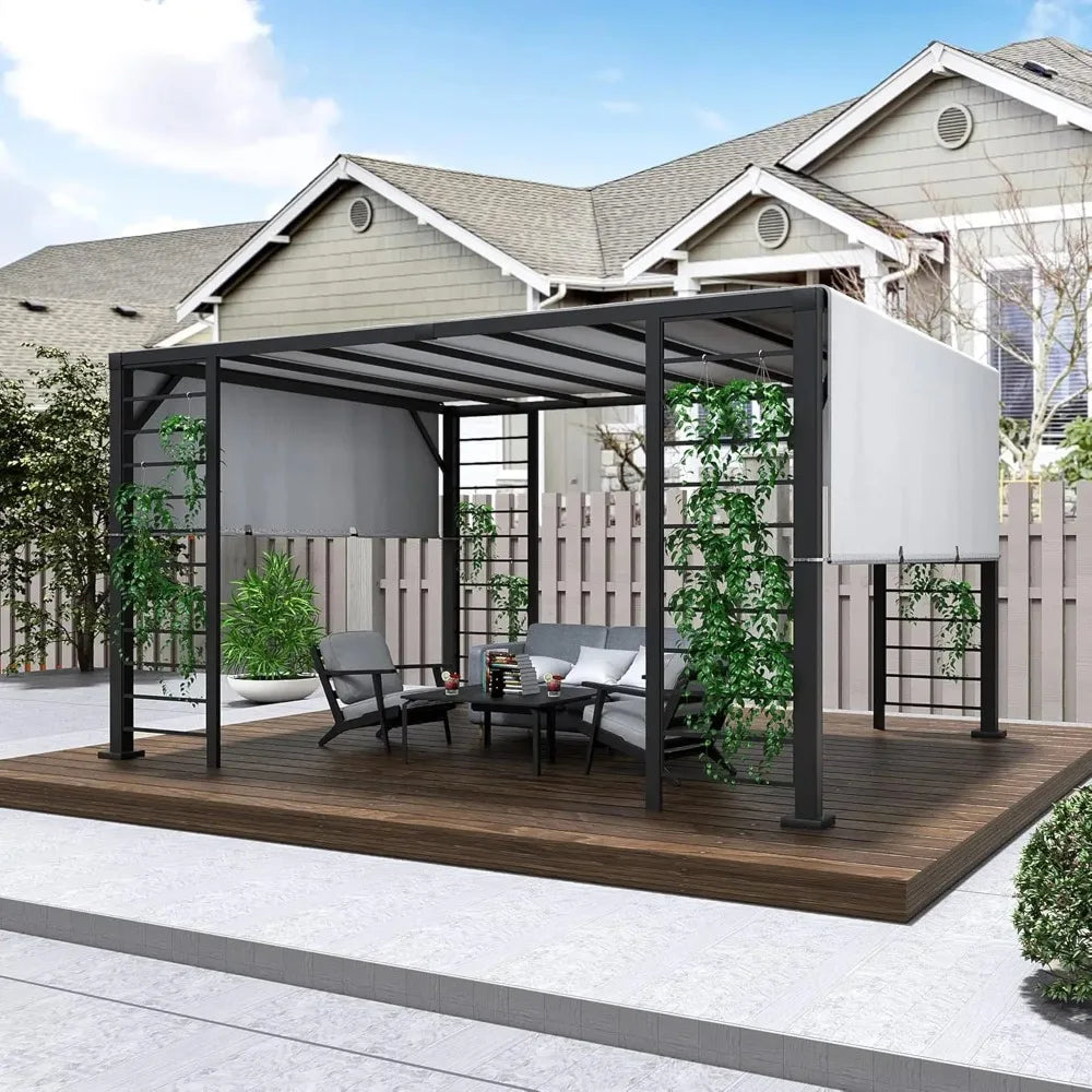 10 X 12 FT Outdoor Retractable Pergola, Metal Patio Pergola with Retractable Sun Shade Canopy and Aluminum Frame for Patio