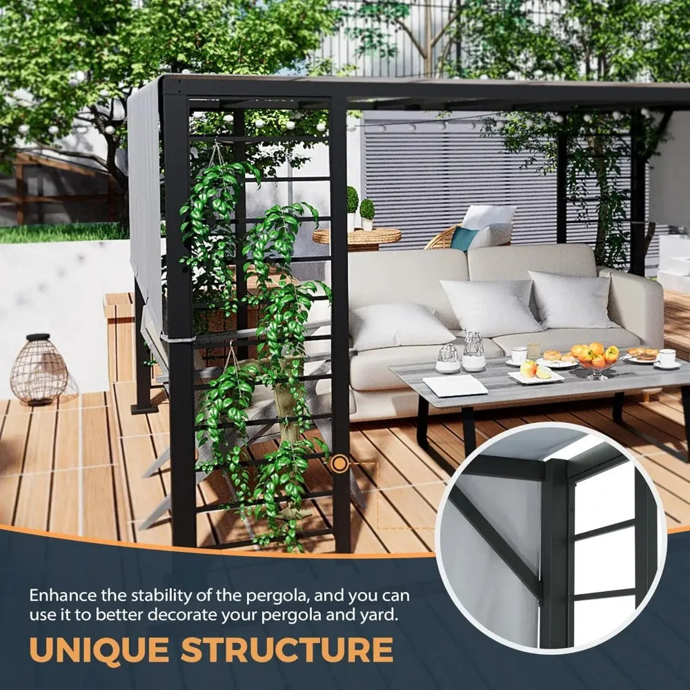 - Versatile: Our versatile patio pergola also works great for your garden, deck, poolside, and more. Whether you're serving a meal to friends, hosting a game night, or relaxing solo with a good book, we're confident you'll love the outdoor pergola!