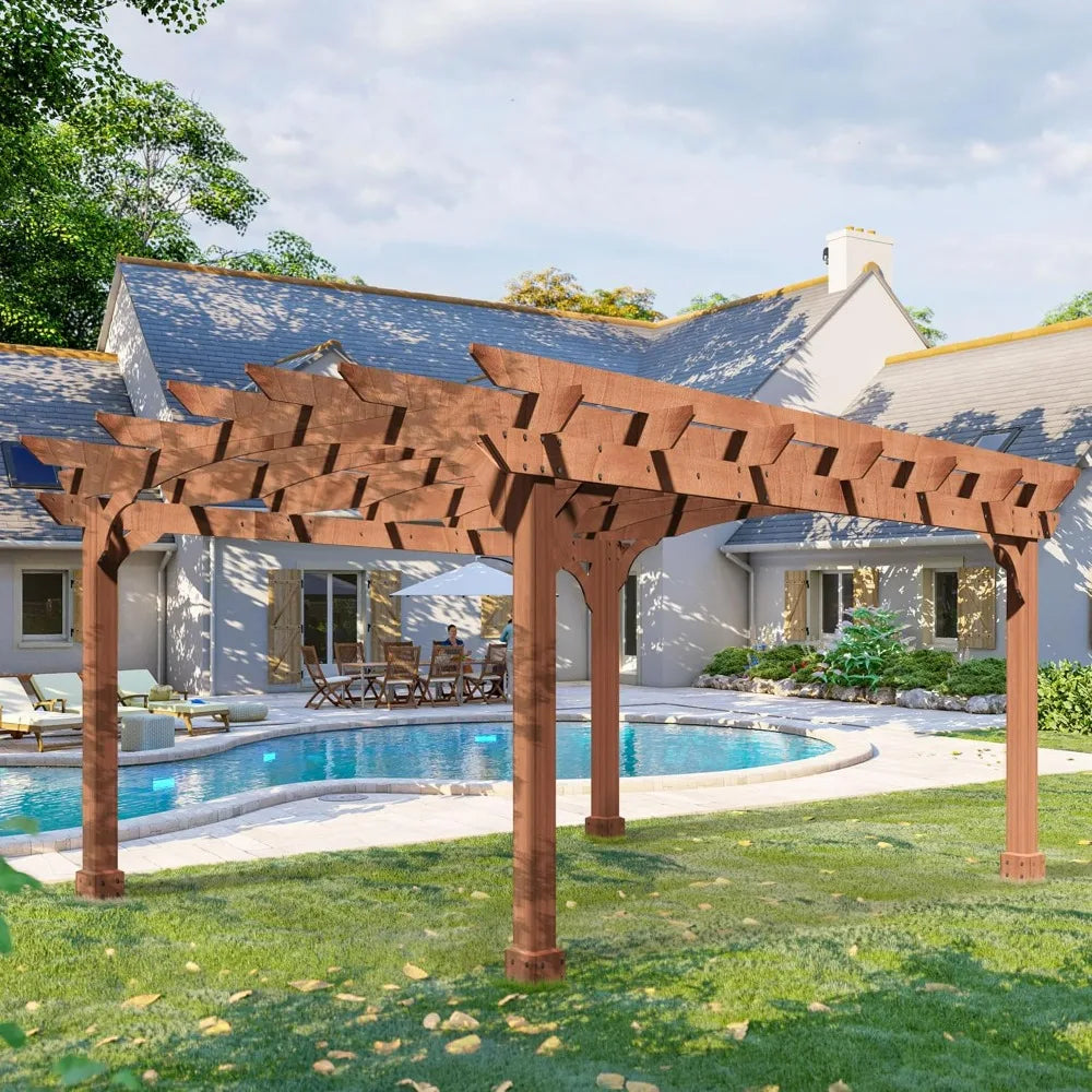 - Bold Solid Cedar Frame - Crafted entirely from cedar, this pergola has a sturdy and corrosion-resistant frame. Its moisture-resistant properties make the 10' x 12' pergolas perfect for withstanding harsh weather conditions, while the extra water-based stain can be painted for added longevity. If you're looking for a low-maintenance pergola that will last for years to come, this is the perfect choice