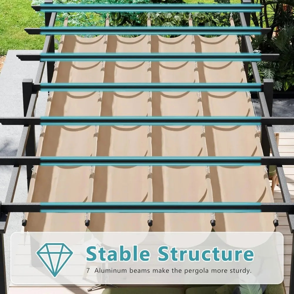 - 【Durable Metal Construction】Crafted from premium aluminum alloy, the pergola features the powder coat finish that is resistant to rust and corrosion. Engineered to withstand deformation and resist fading, it ensures long-lasting performance for years of outdoor use in any weather conditions.