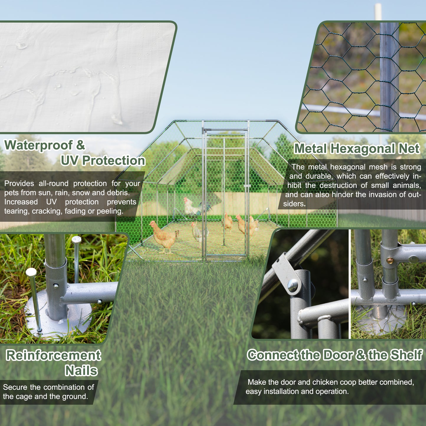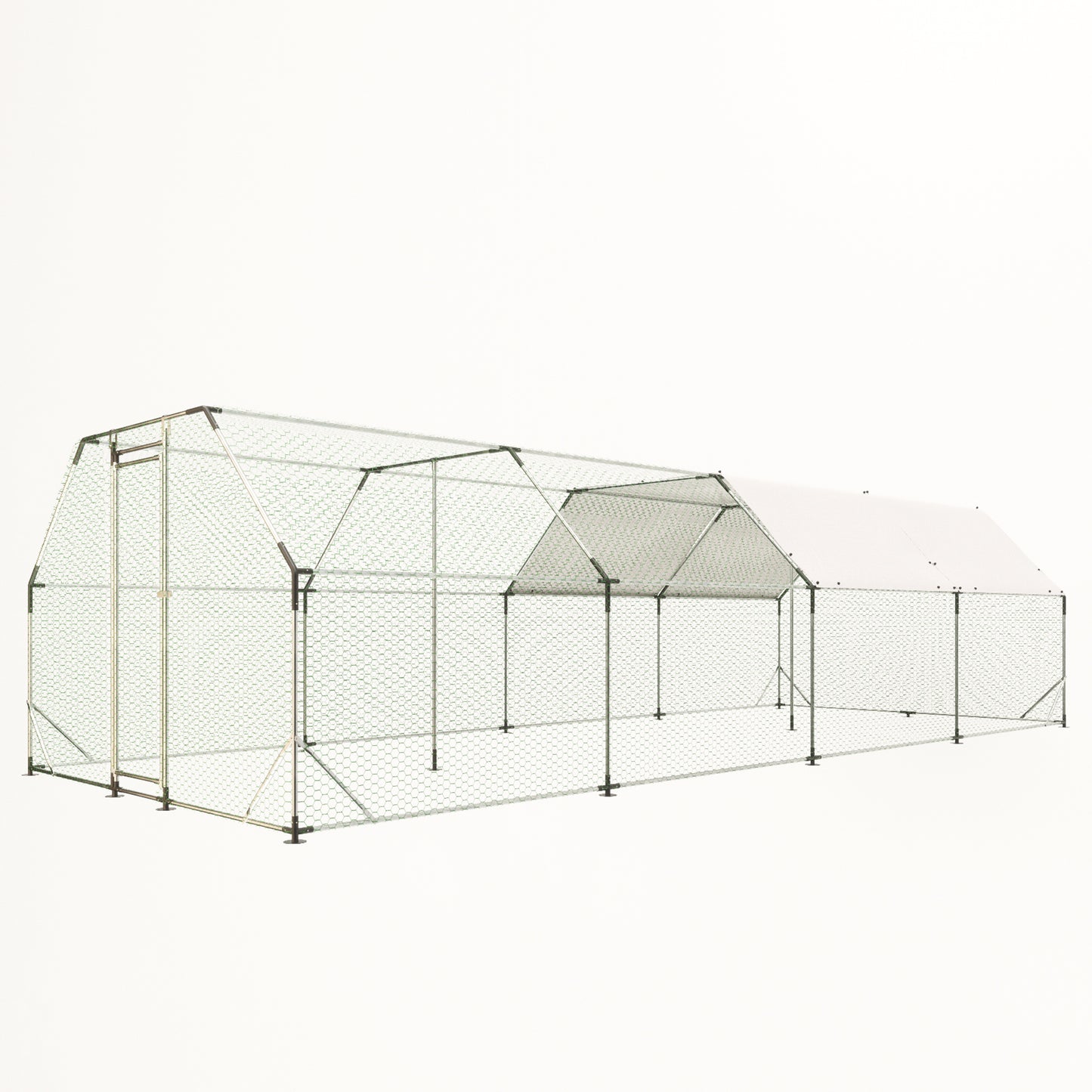 9.94 ft. x 25.68 ft. Galvanized Large Metal Walk in Chicken Coop Cage Farm Poultry Run Hutch Hen House
