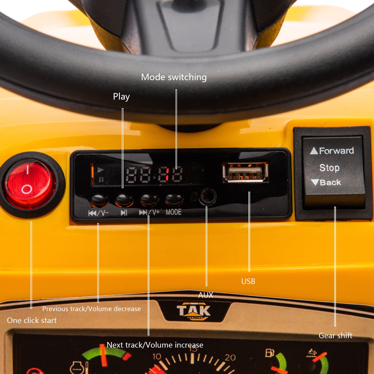 - 【Multiple Functions & Riding Fun】This tractor is built in a realistic starting roar and also comes with music player, bright headlights, horn, adjustable seat belts and so on, bringing kids a safer and more interesting driving experience.