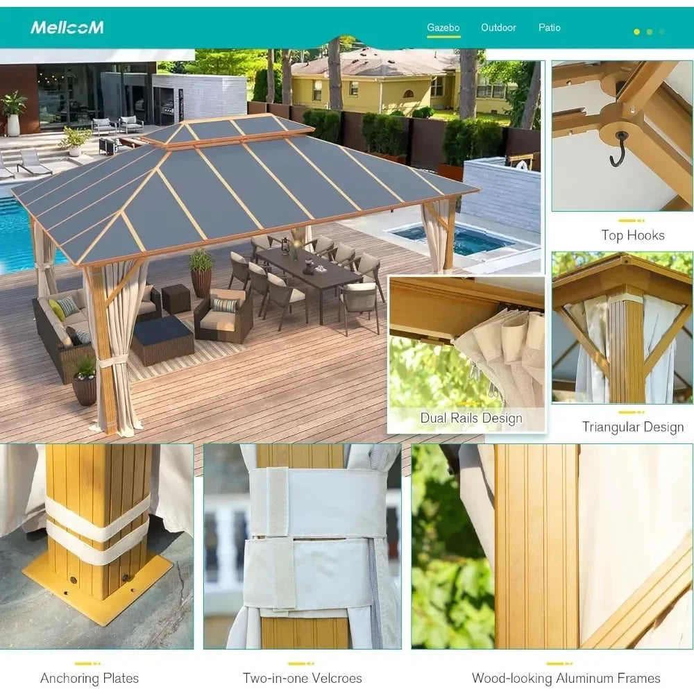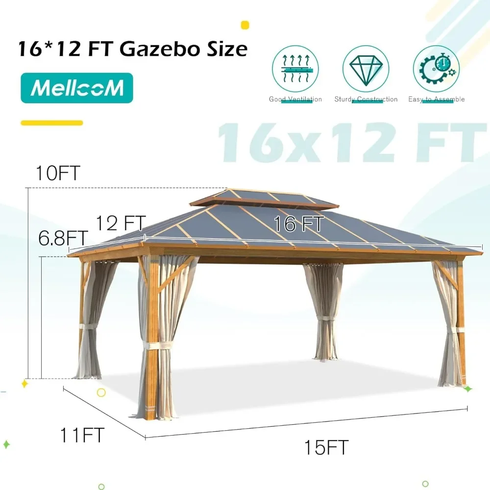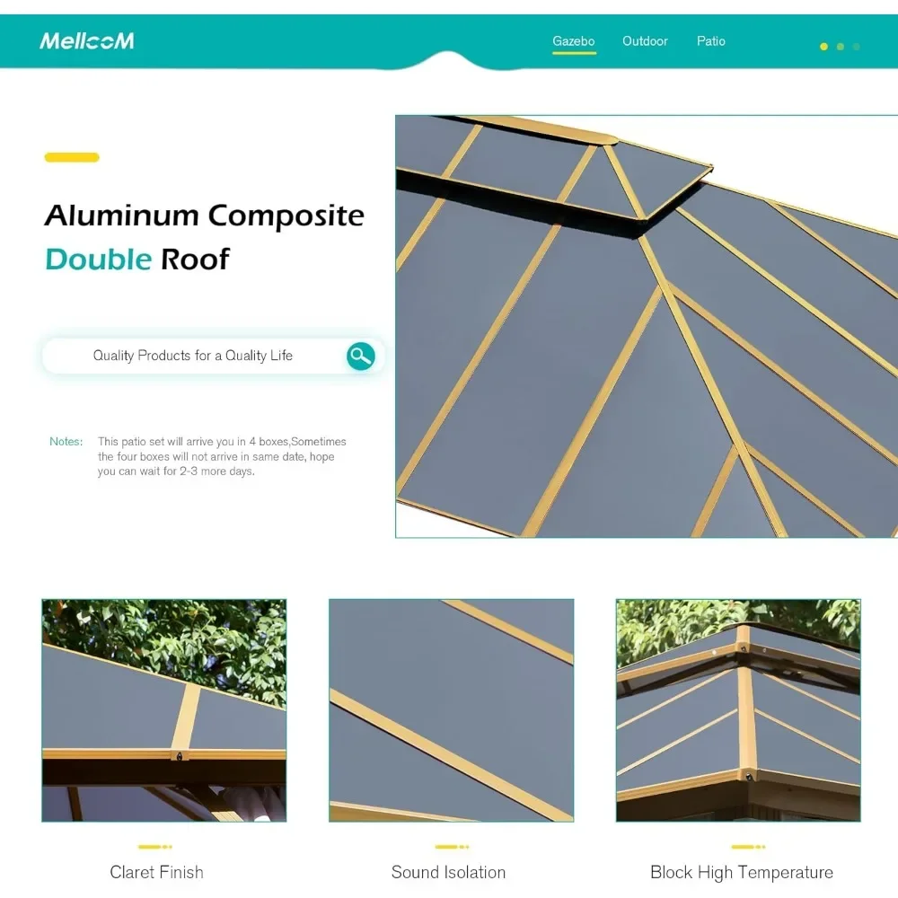 12x16FT Hardtop Gazebo, Coated Aluminum Patio Gazebo with Aluminum Composite Double Roof, Curtains and Netting Included, Canopy