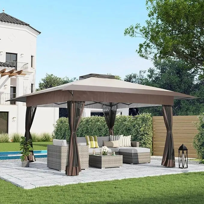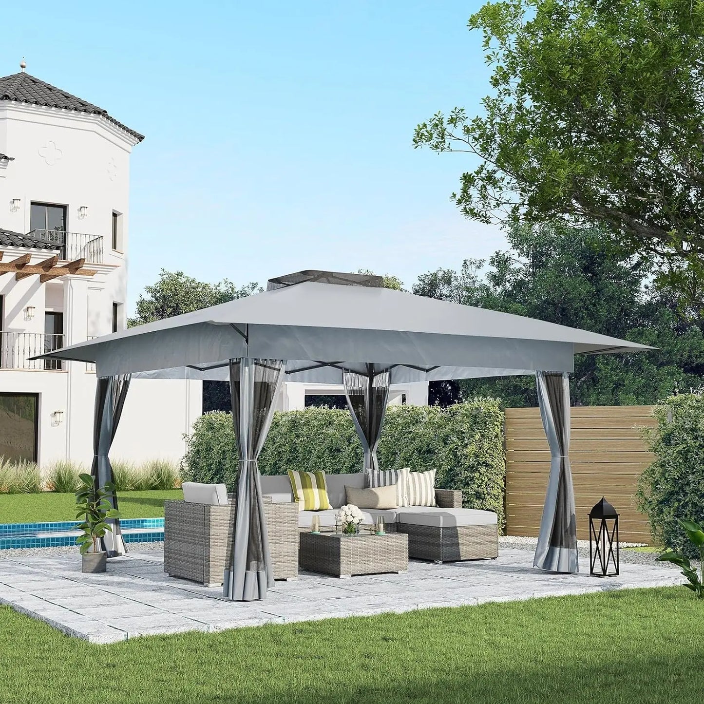 13x13 Ft Pop Up Gazebo, Outdoor Canopy Tent Shade with Metal Frame Mosquito Netting for Patio, Garden, Lawn, Backyard, Gray