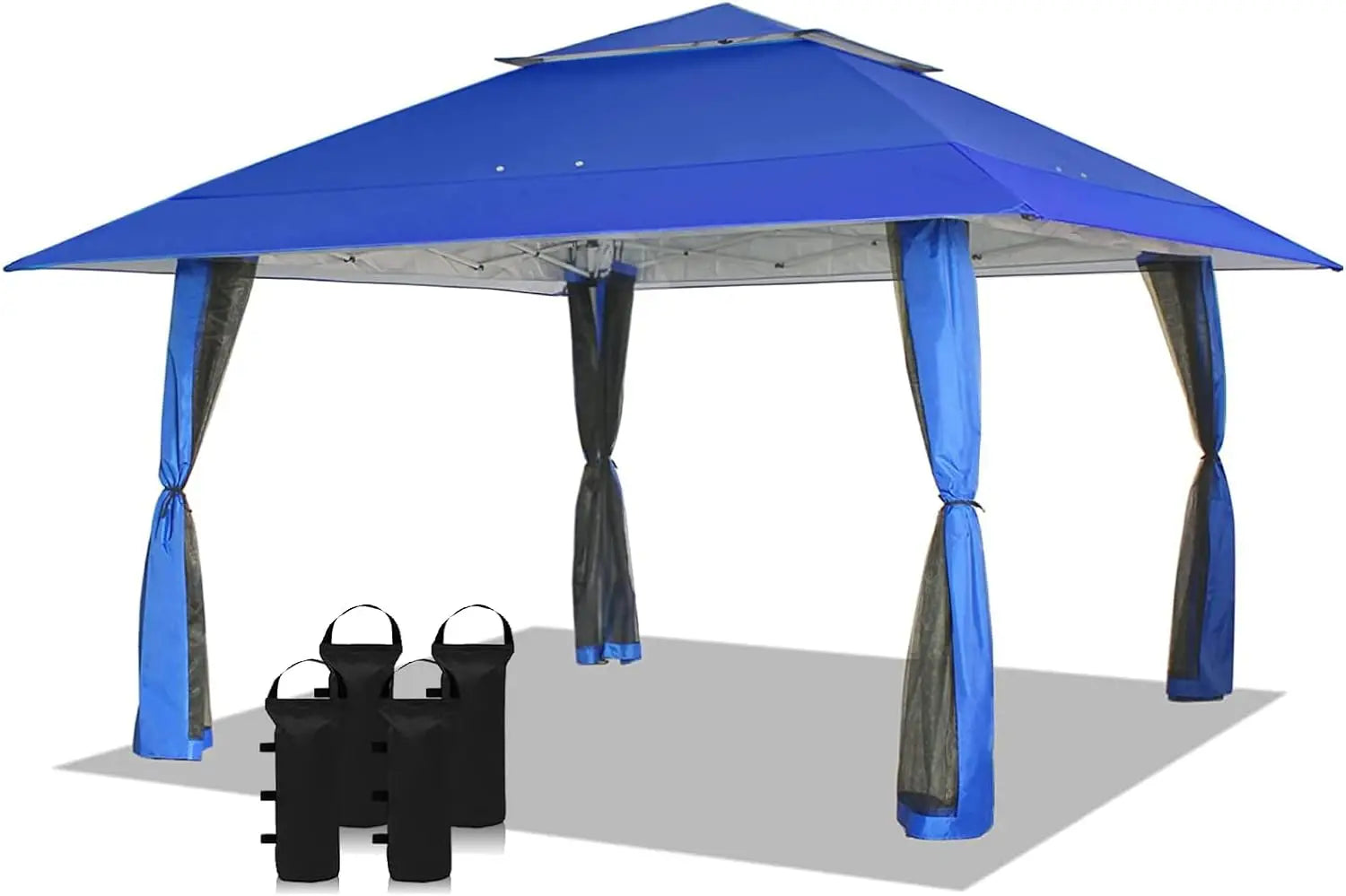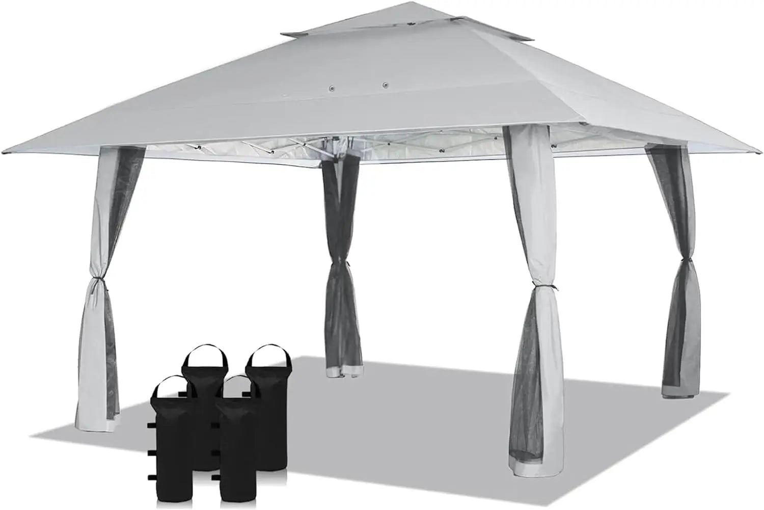 - [LARGE SPACE]: Base dimensions are 10' x 10'. Canopy dimensions are 13' x 13' with 169 square feet of shade. Over 9' maximum interior height, and over 6' maximum clearance under the valance. Plenty of standing room, and 14 people can sit comfortably in the cool shade.