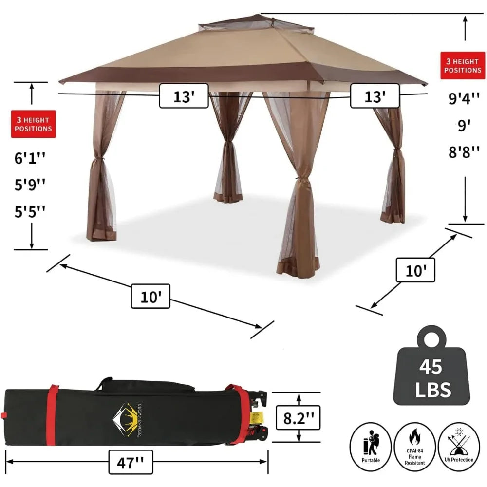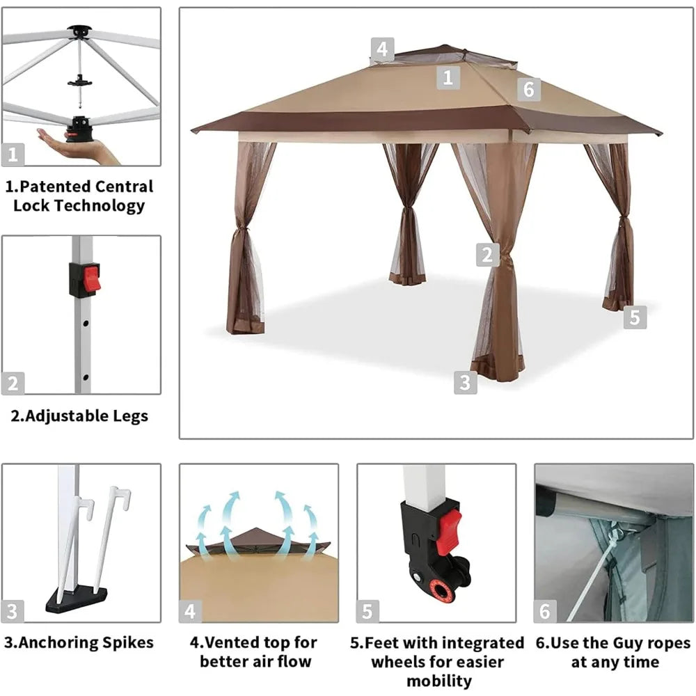 13x13 Pop Up Gazebo, Patented One Push Outoor Canopy Tent with Wheeled STO-N-Go Cover Bag, Pop Up Canopy with Netting for