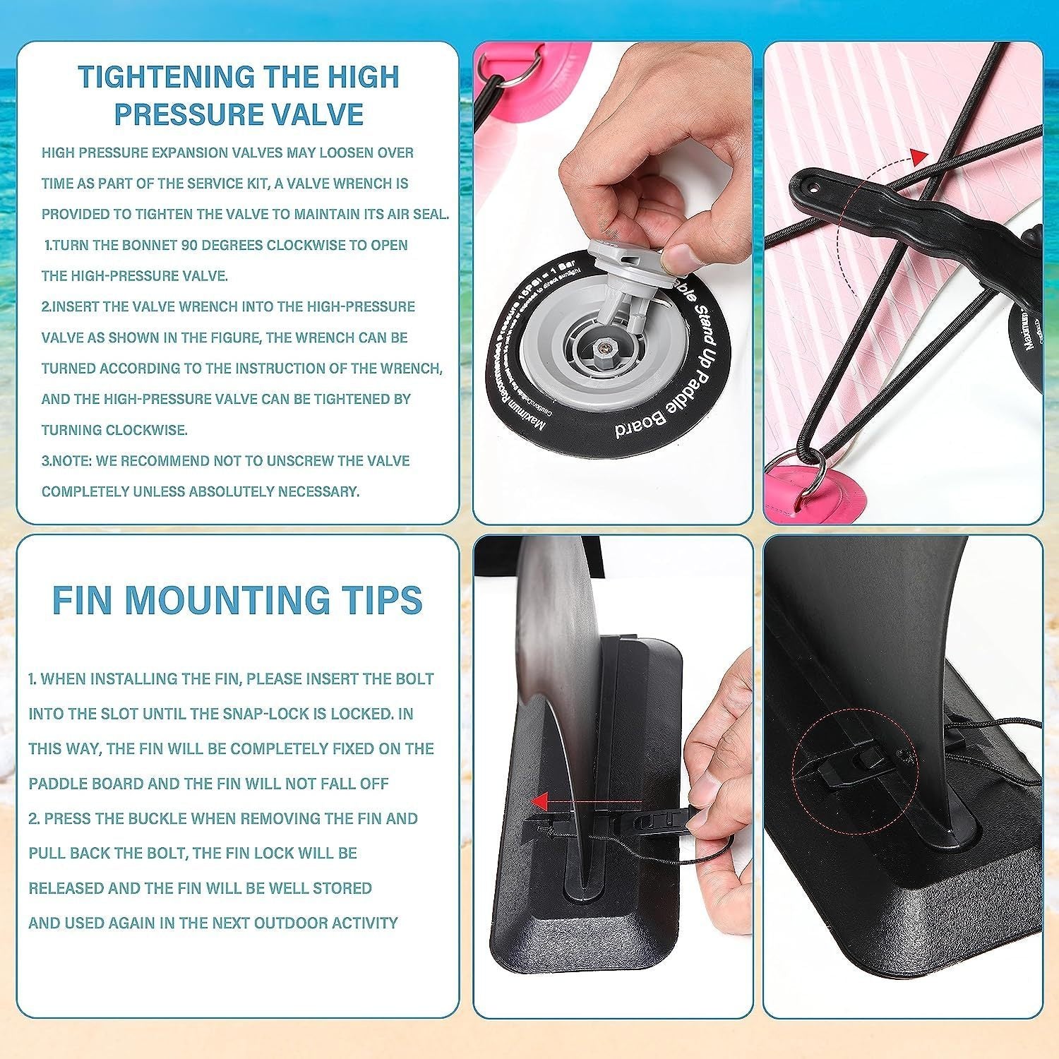 - π[Wide Stable Design for Better Balance] The dimensons of paddle board is 10.4ft length, 33 inches width and 6 inches thickness, achieved amazing balance ability. The 2 bottom fins design and a removable center fin help improve overall speed and maneuverability. Easy handling and steering by kids, teens and adults. In addition, the upgraded non-slip soft deck is an ideal for all skill levels for less accidents or injuries while you fall!