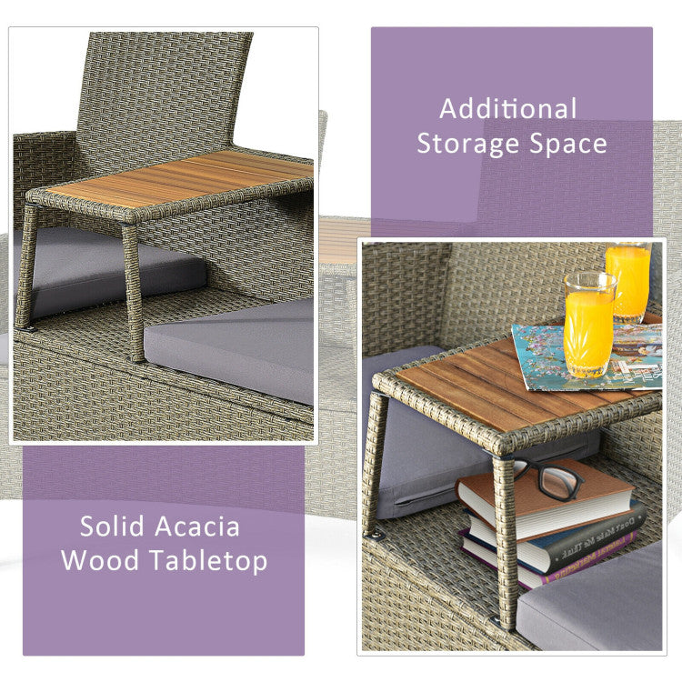 2-Person Patio Rattan Conversation Furniture Set with Coffee Table
