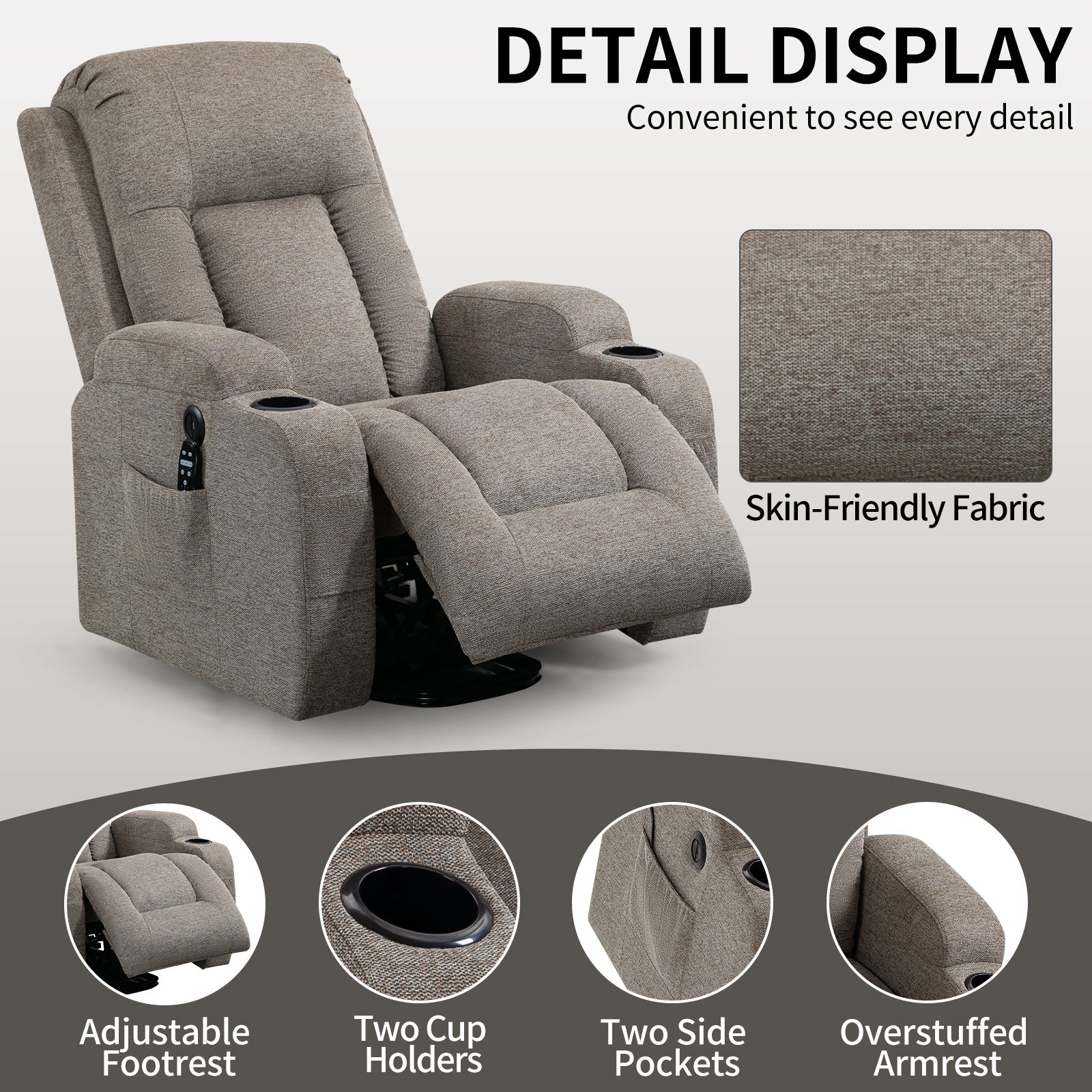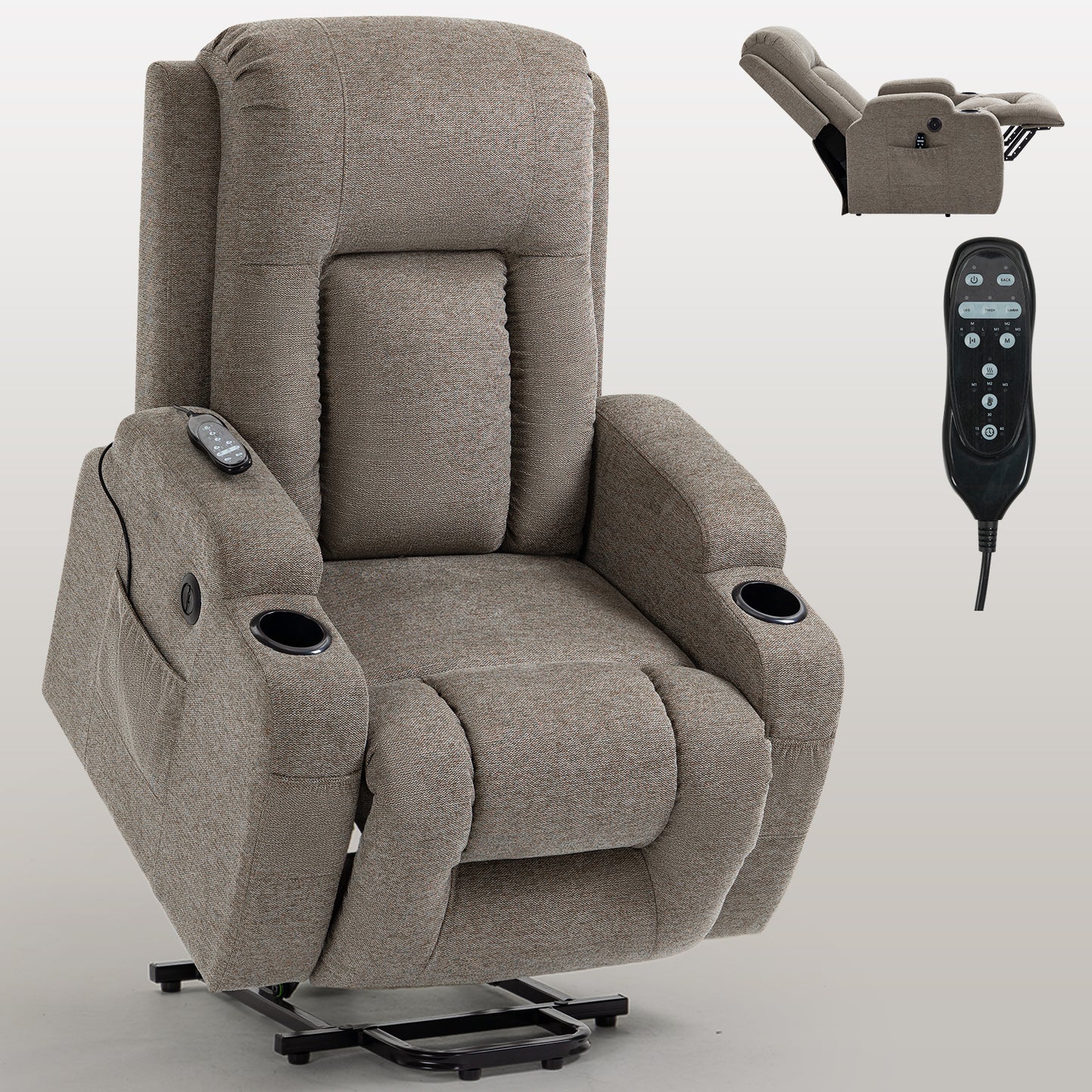 Infinite Position Single Motor Up to 350 LBS Power Lift Recliner Chair for Elderly, Heavy Duty Motion Mechanism with 8-Point Vibration Massage and Lumbar Heating, USB Charging Port, Cup Holders, Brown