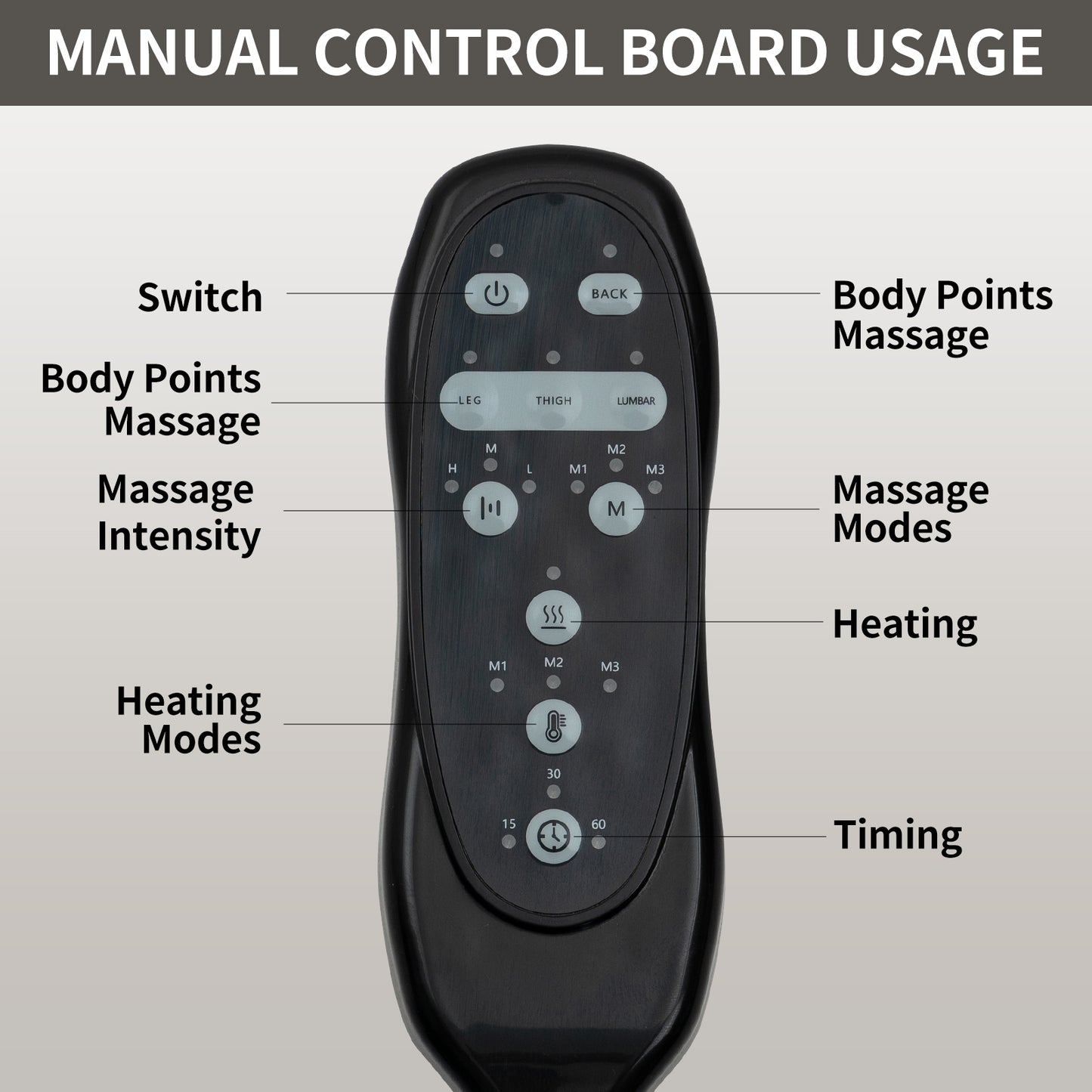 - MASSAGE & LUMBAR HEAT FUNCTIONS: It comes with 8 vibrating nodes (back, lumbar, thighs, legs) and 3 massage modes for selection, each massage point can be operated individually. You can choose to massage a specific part separately. There is timer function in 15/30/60 minutes which is convenient for you to set massaging time. Add a lumbar heat point to promote blood circulation throughout your body, providing a full body relaxation!