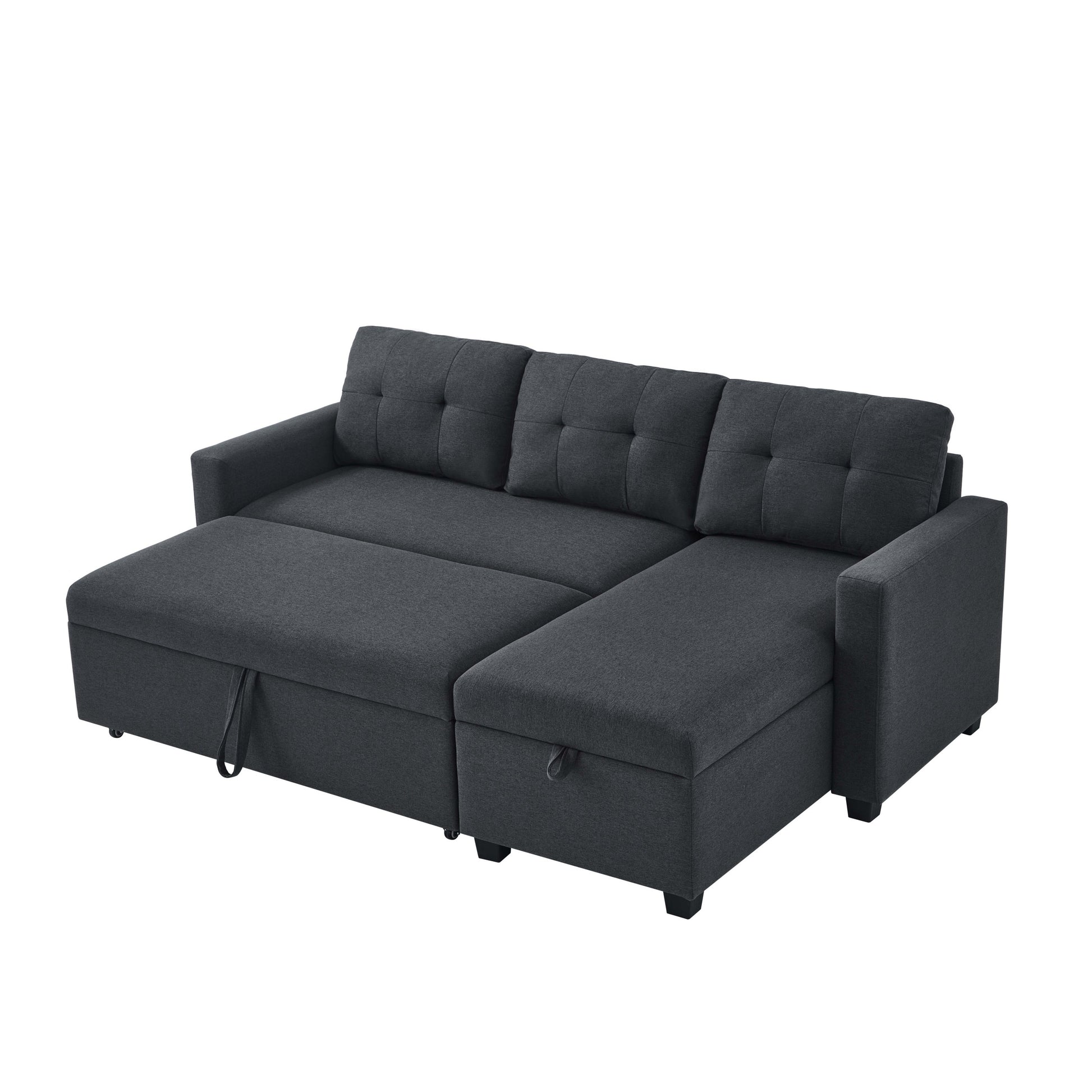 Upholstered Pull Out Sectional Sofa with Storage Chaise, Convertible Corner Couch, Dark Grey