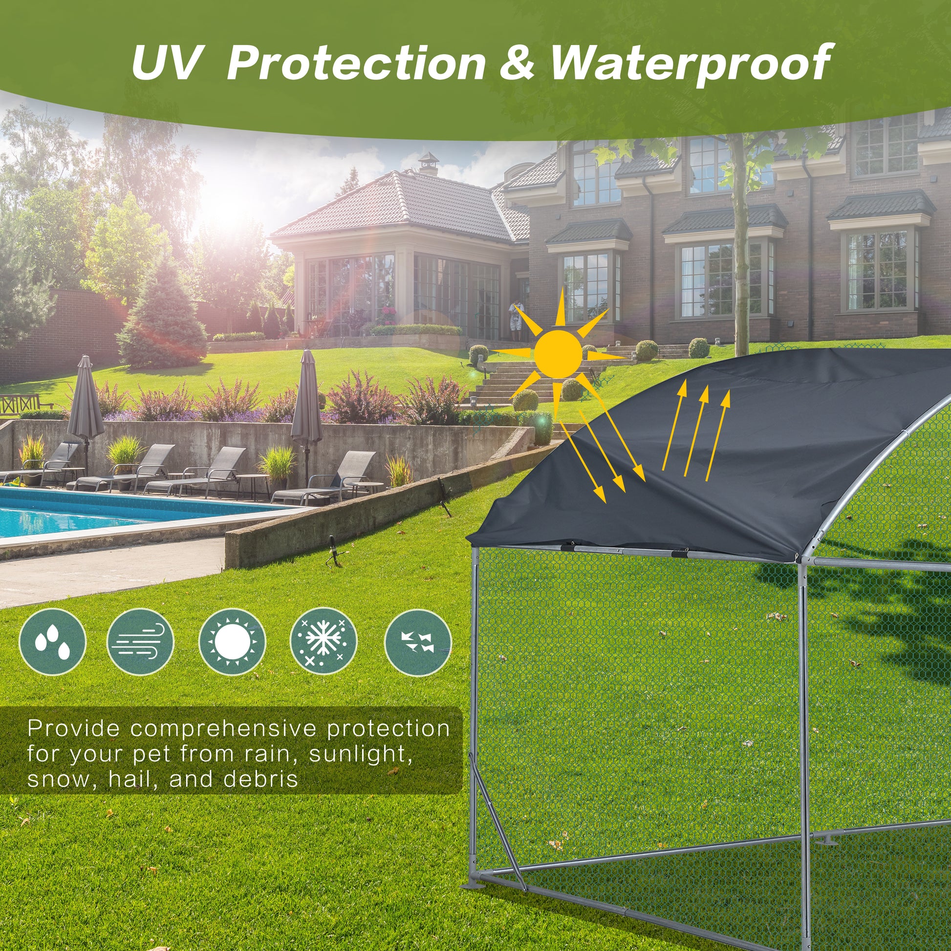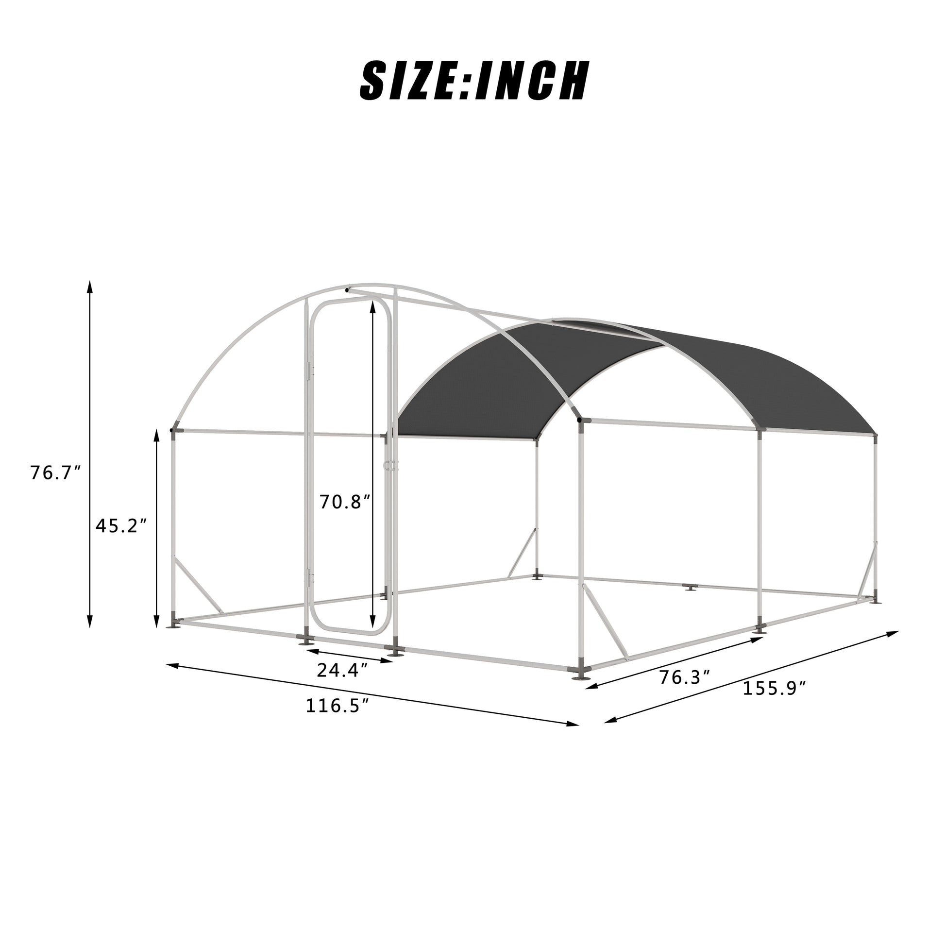 Large Metal Chicken Coop with Run, Walkin Chicken Coop for Yard with Waterproof Cover, 13.1 x 9.8 x 6.6 ft, Dome Roof Large Poultry Cage for Hen House, Duck Coop and Rabbit Run, Silver