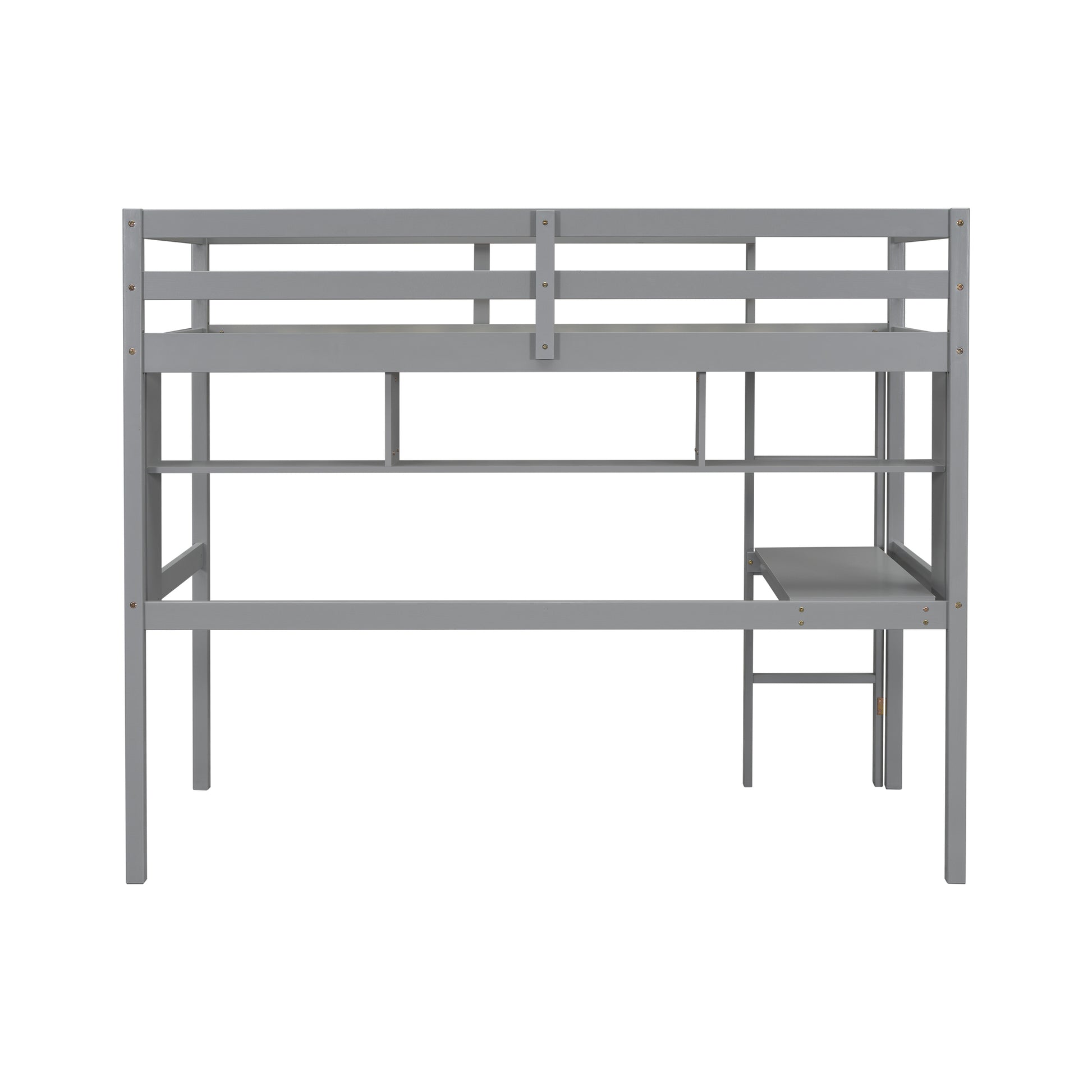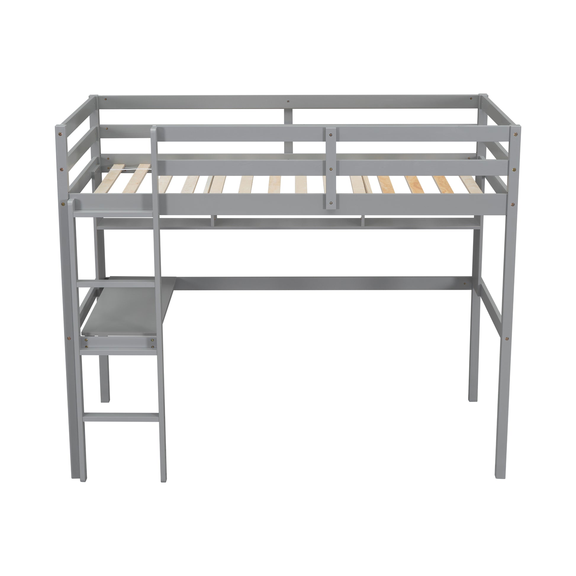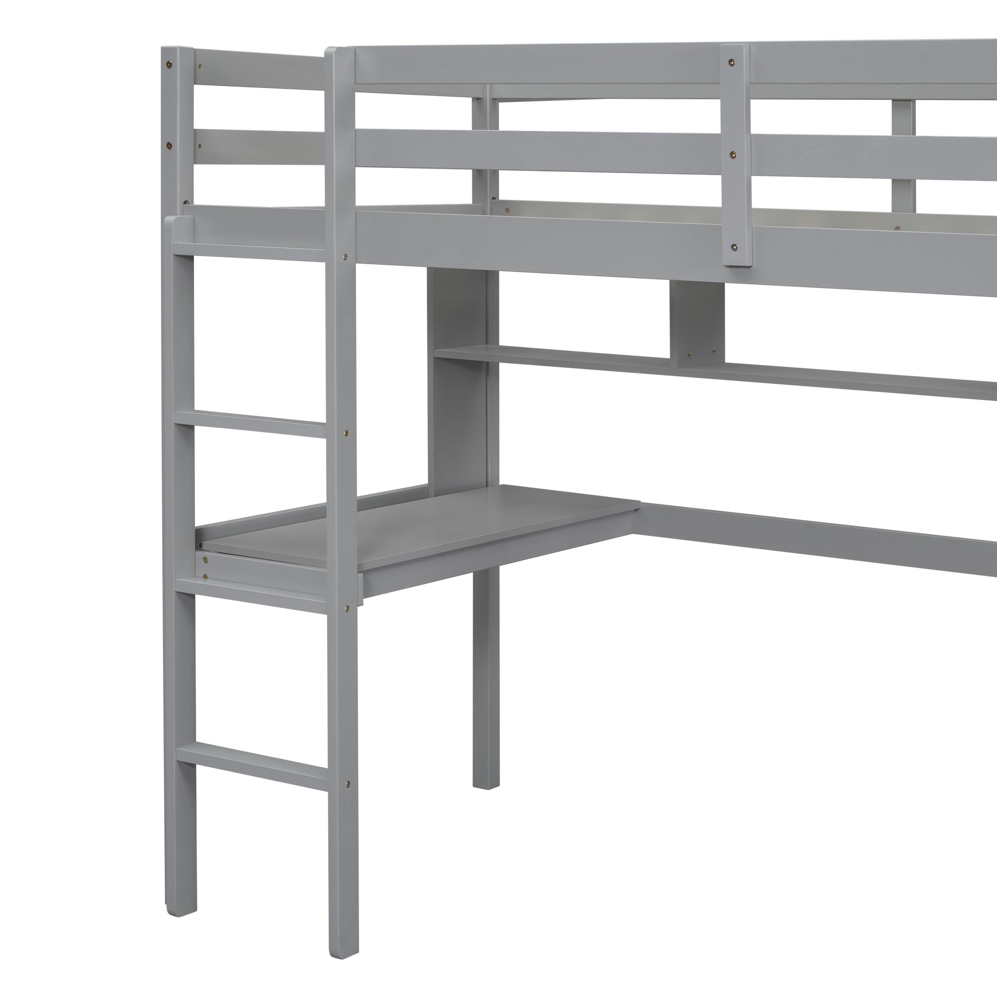 [SantaChoice] Twin Size Loft Bed with desk and shelves, Safety Guardrail and ladder,Grey