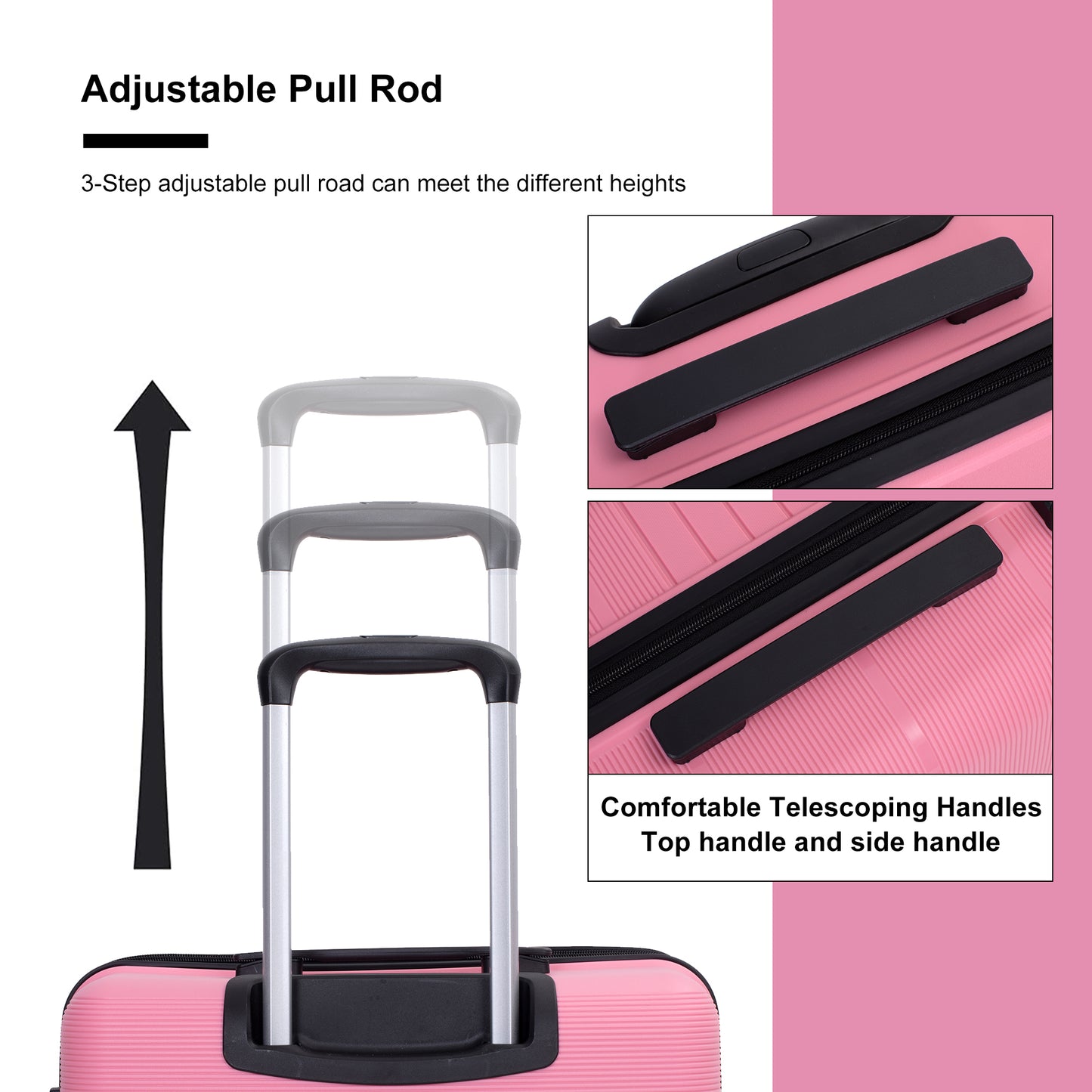 Hardshell Suitcase Double Spinner Wheels PP Luggage Sets Lightweight Durable Suitcase with TSA Lock,3-Piece Set (20/24/28) , Pink