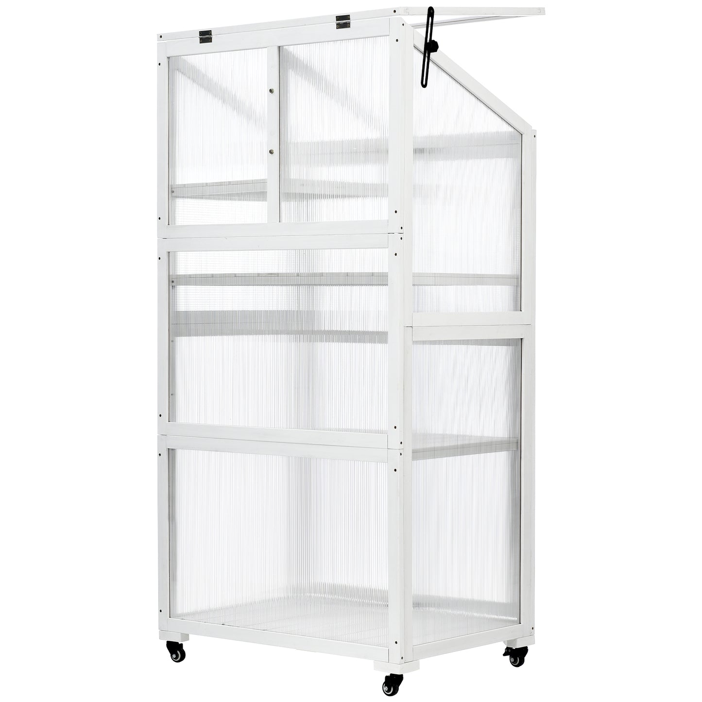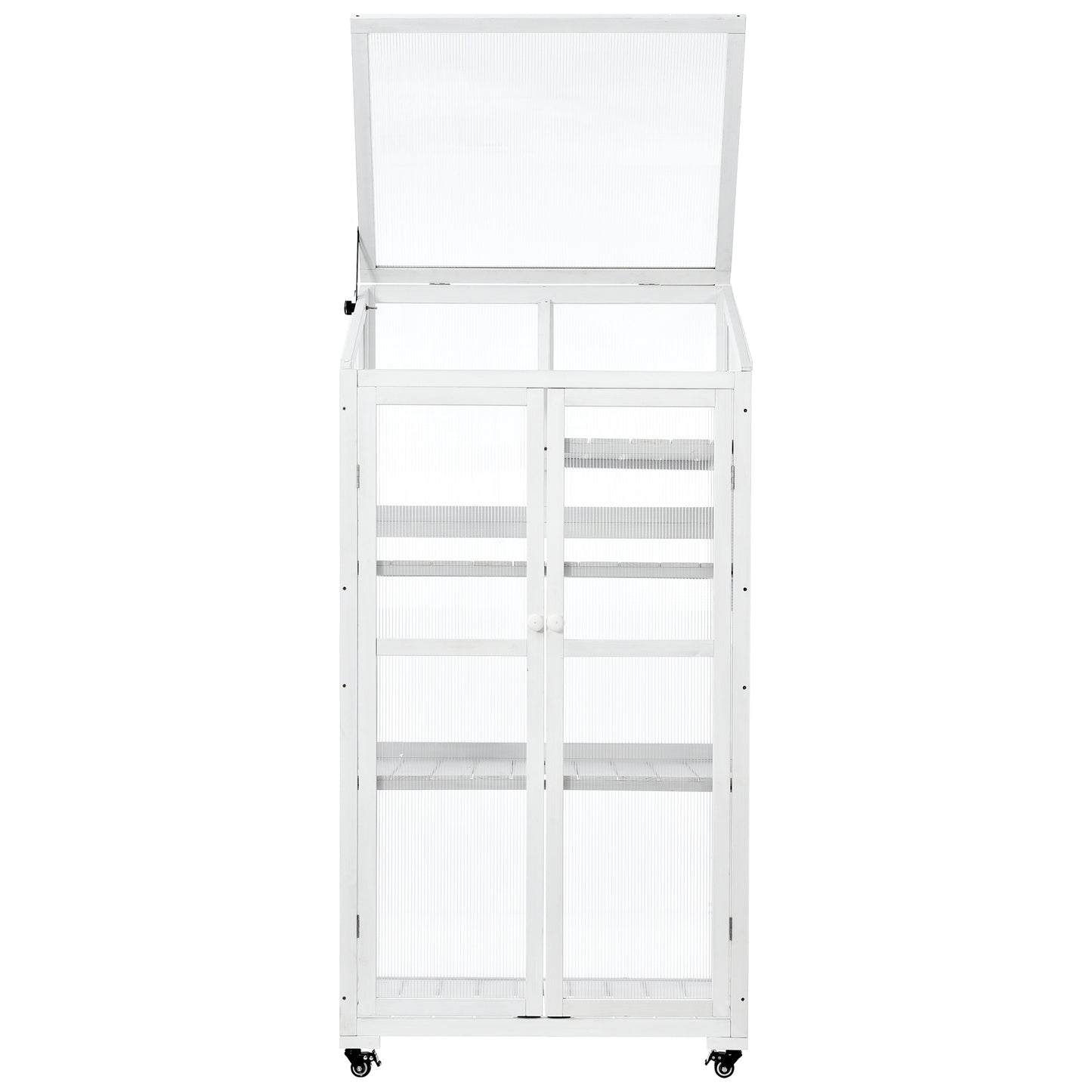 TOPMAX 62inch Height Wood Large Greenhouse Balcony Portable Cold Frame with Wheels and Adjustable Shelves for Outdoor Indoor Use, White