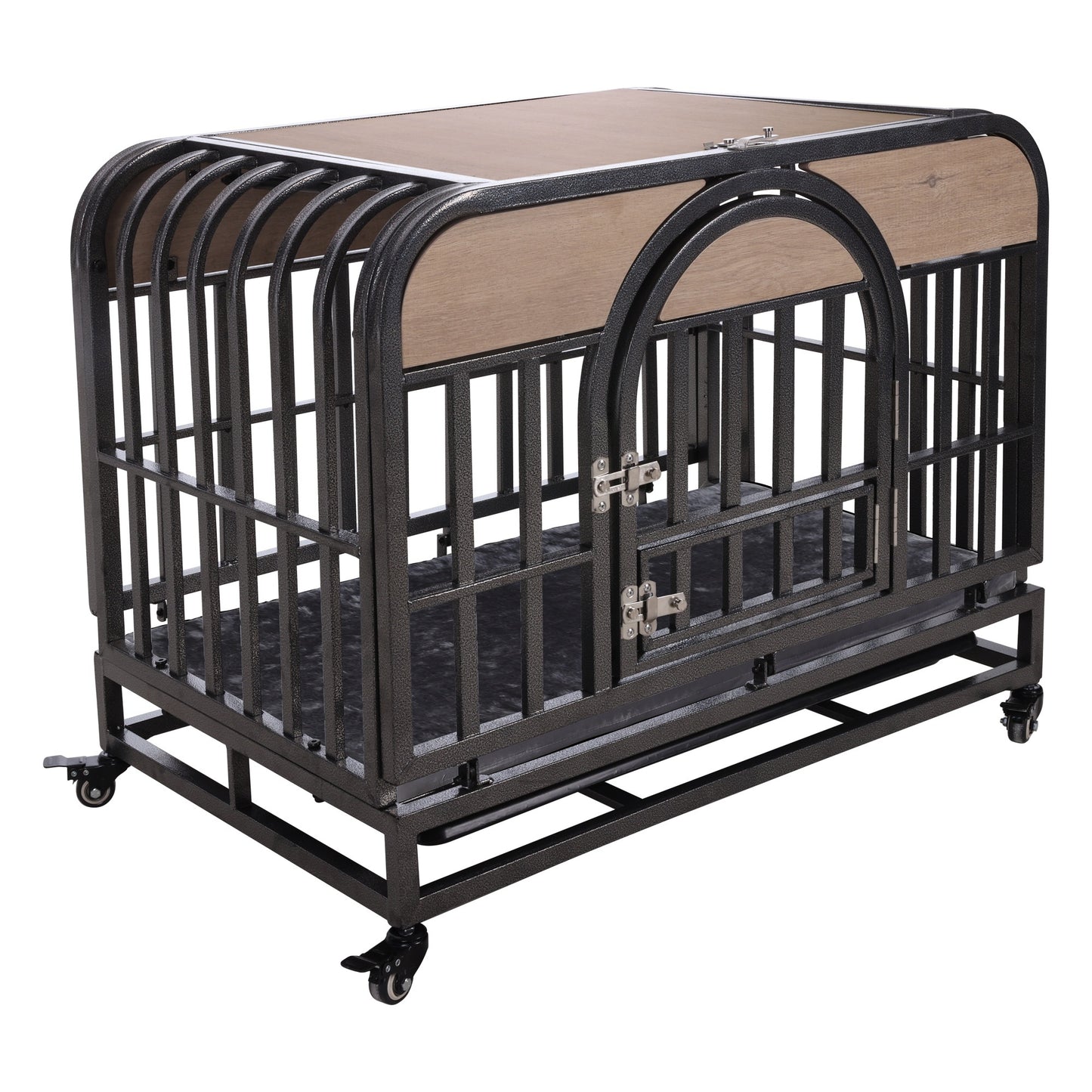 46in Heavy Duty Dog Crate, Furniture Style Dog Crate with Removable Trays and Wheels for High Anxiety Dogs