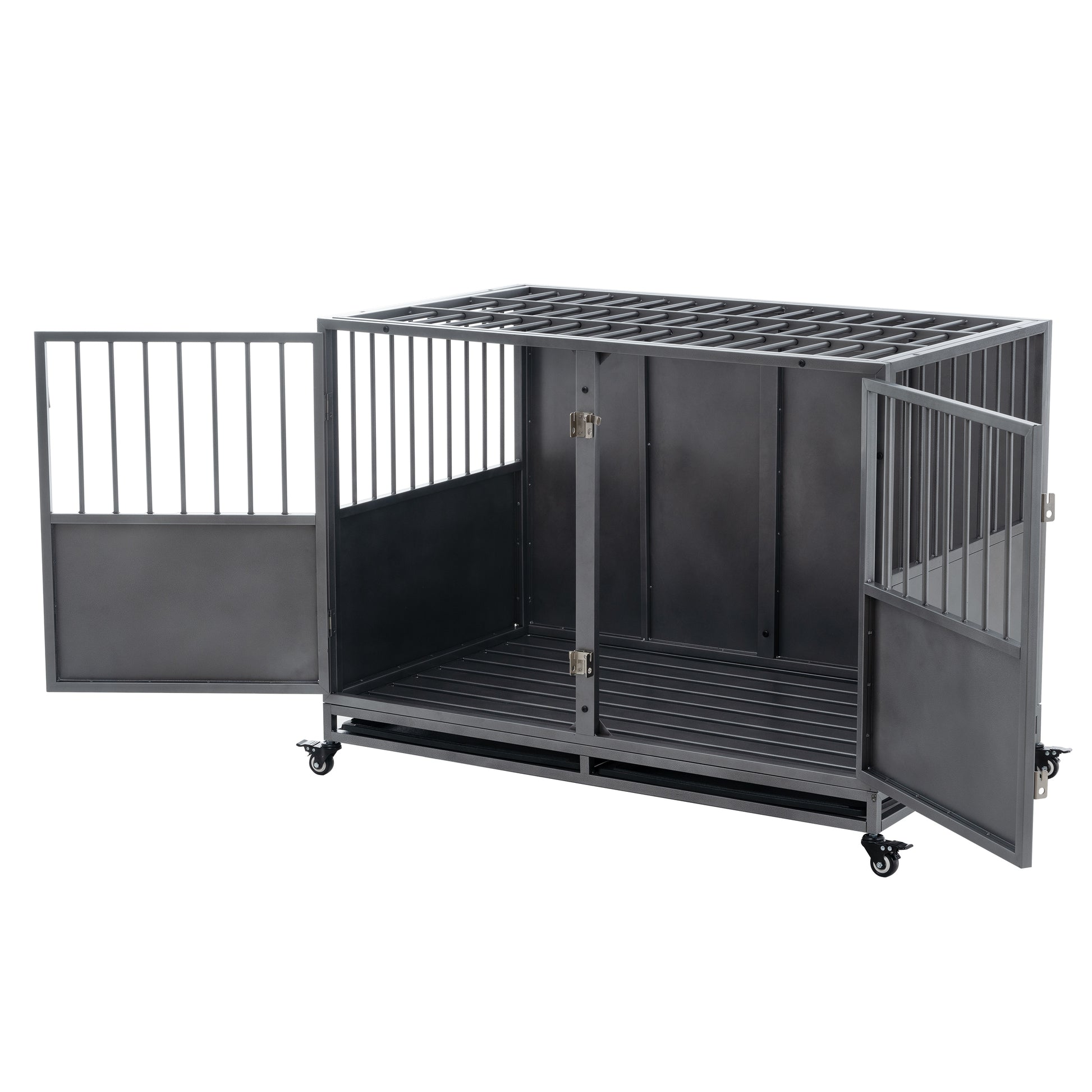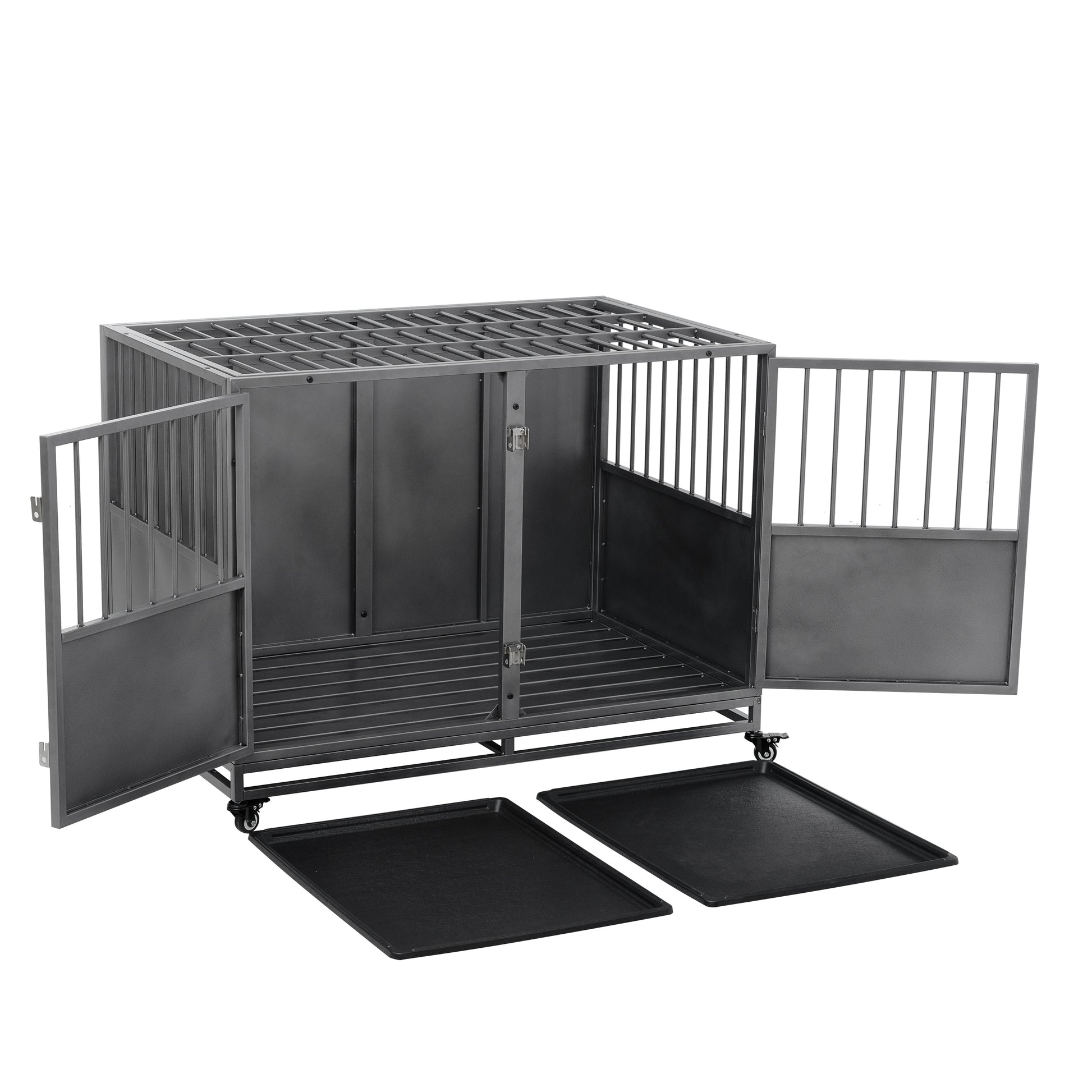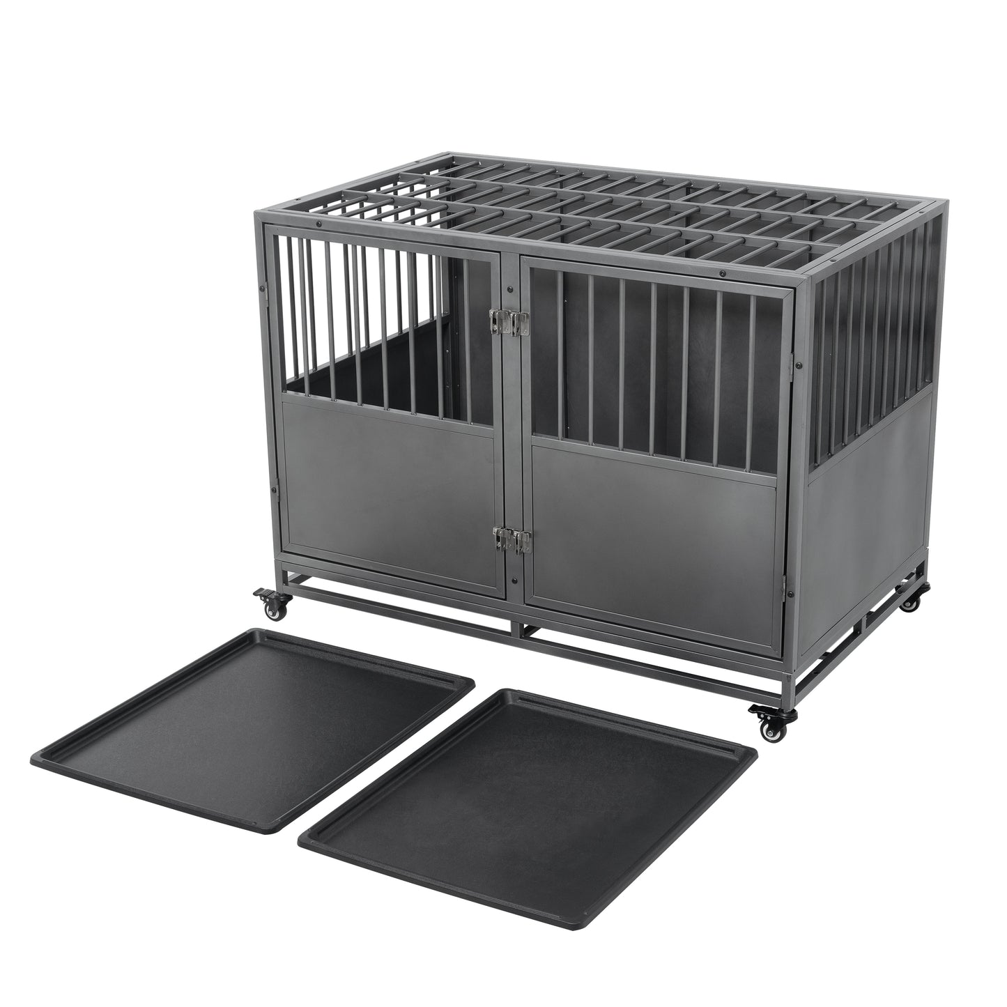 - Double Door Style: There are two doors in front side, you can open one or both for your needs, and also you can divide the crate space when the dog is just a puppy.
