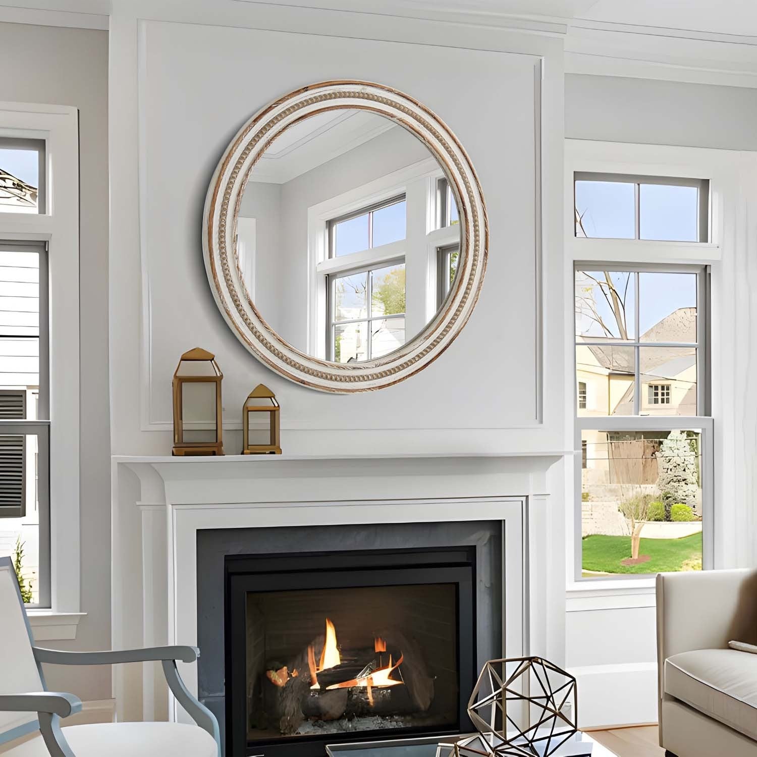 - Perfect Size for Any Space: With its 23.62 inches diameter, this circle mirror is the ideal size to make an impact without overwhelming your wall. Its rustic farmhouse style paired with the elegant beaded frame is sure to grab attention in any room, from the living room to the entryway