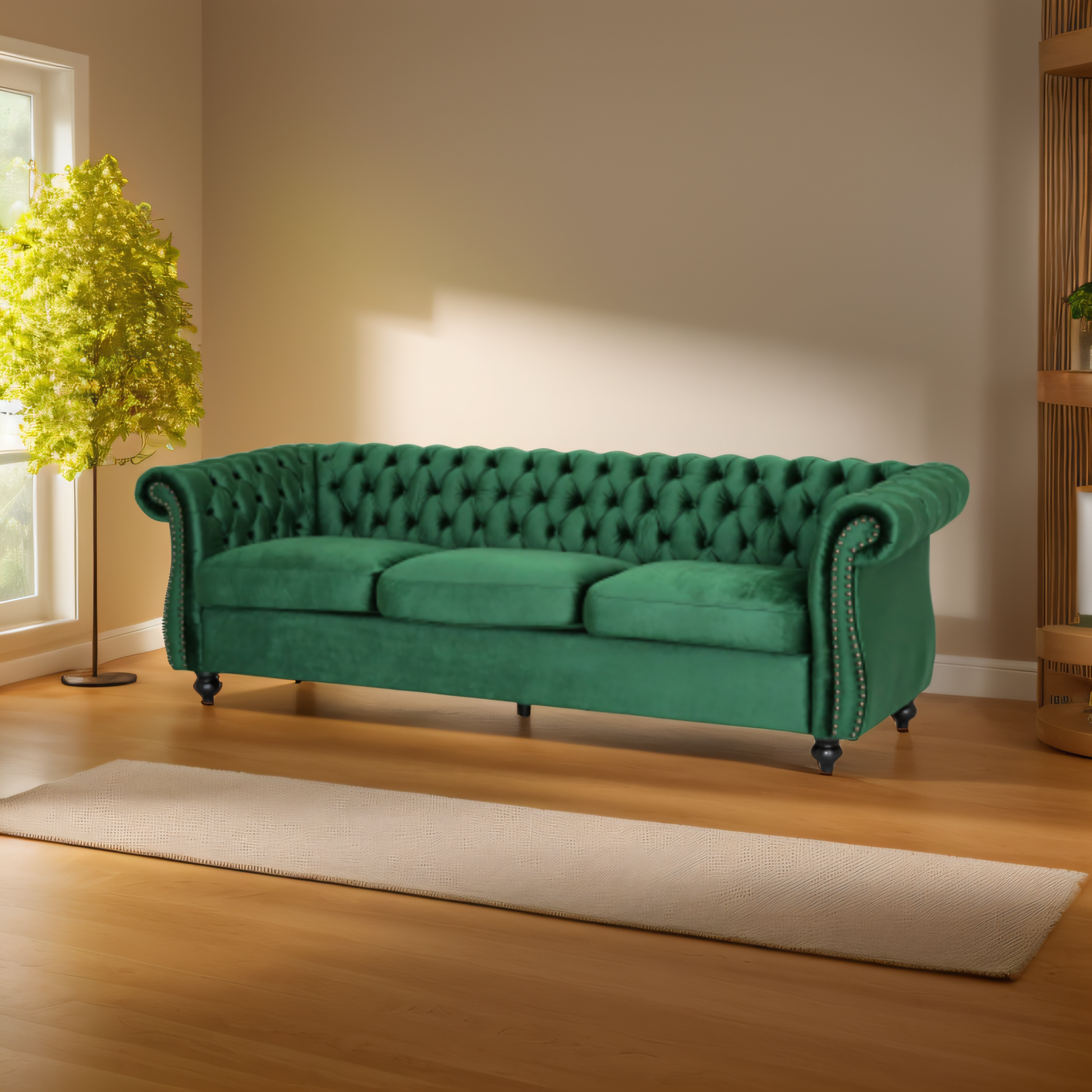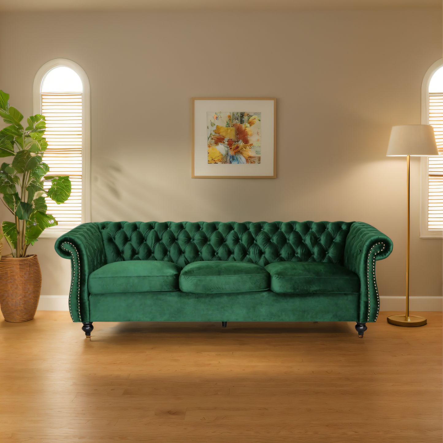 - Versatile Design: Despite its vintage-inspired aesthetic, our sofa complements a variety of decor styles, from traditional to eclectic. Its timeless charm and versatile Emerald color make it a versatile addition to any home, adding character and personality to your living space.