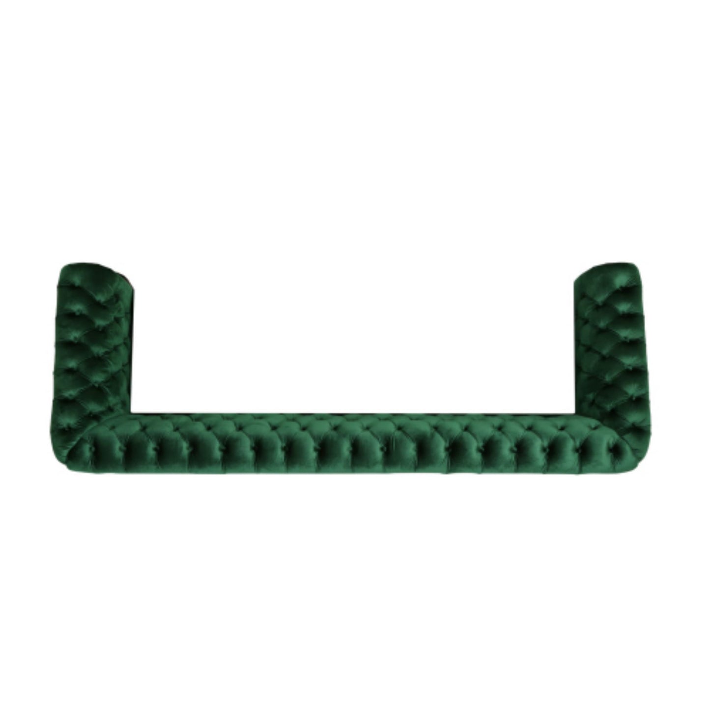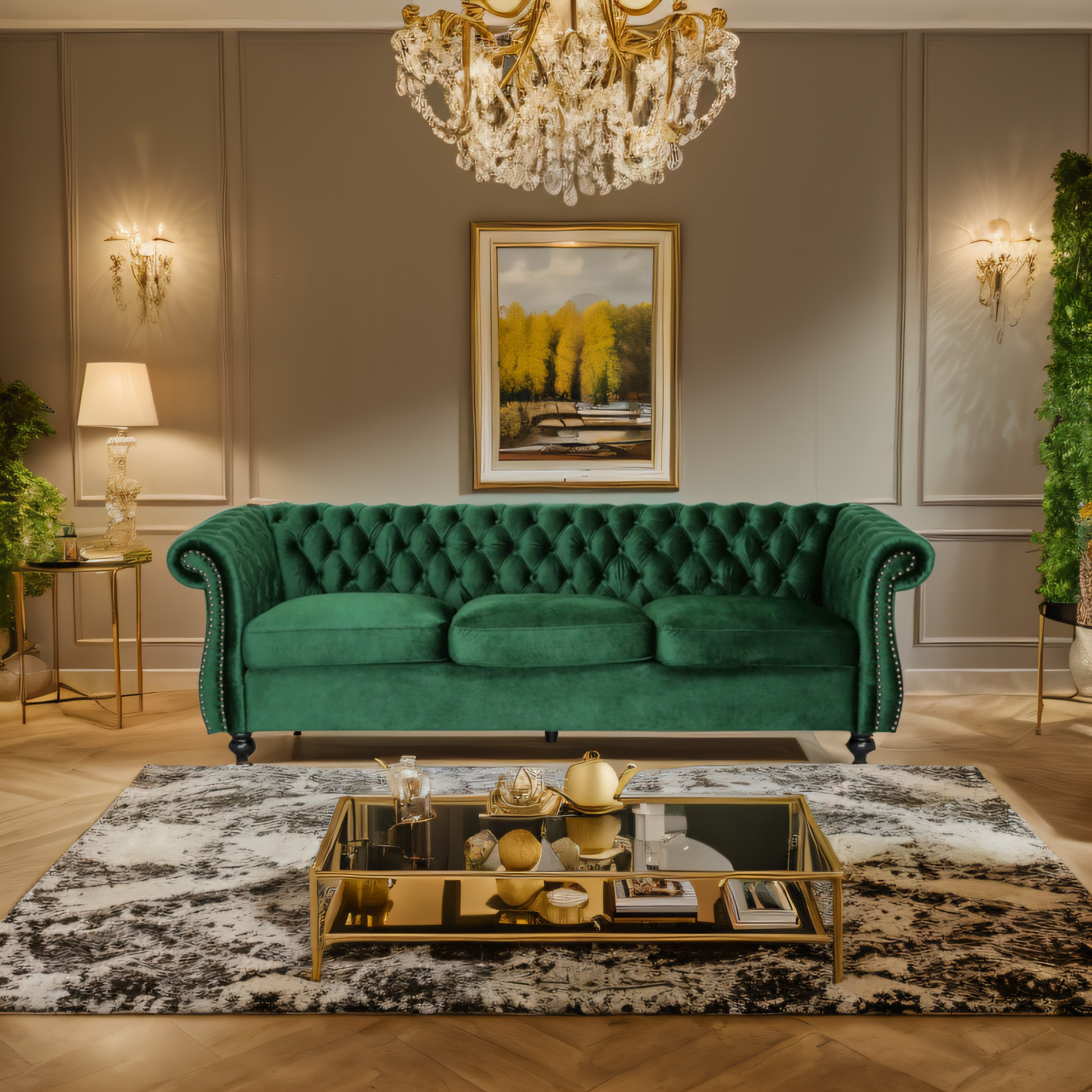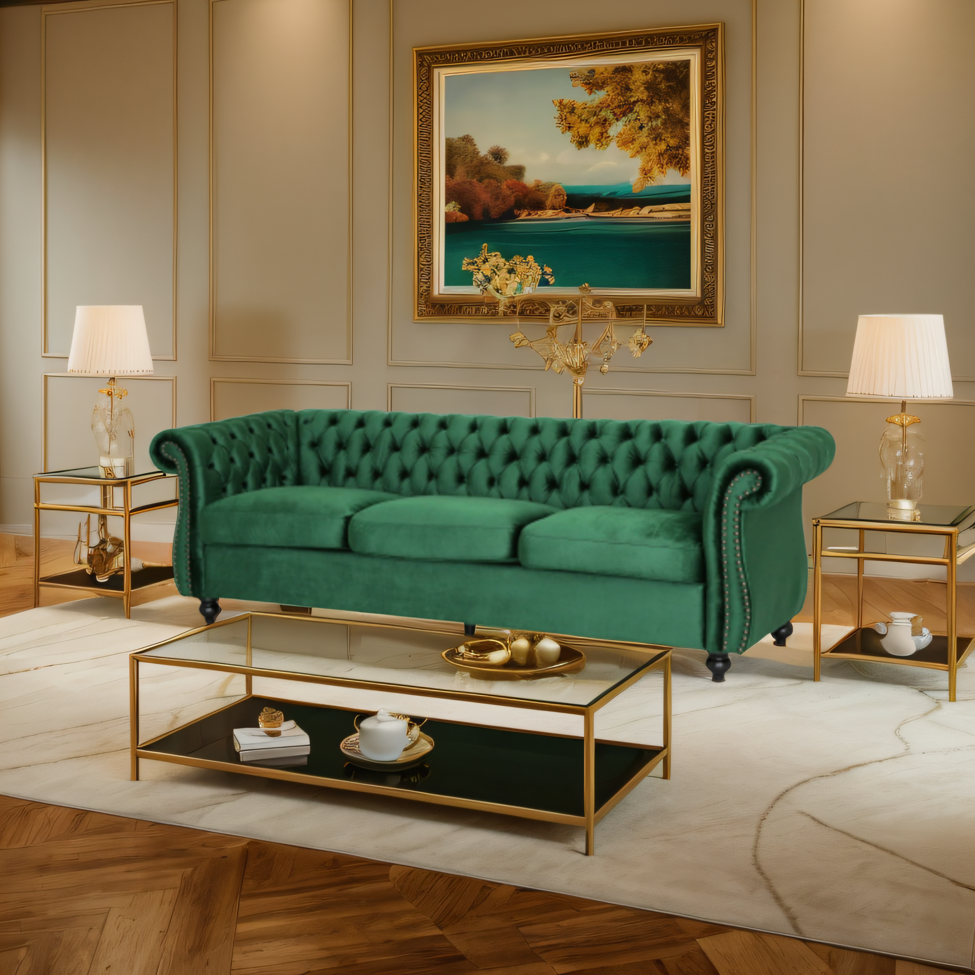 - Luxurious Velvet Upholstery: Crafted from sumptuous velvet material, our sofa exudes luxury and opulence. The soft texture and rich Emerald hue add a touch of glamour, creating a cozy and inviting seating experience.