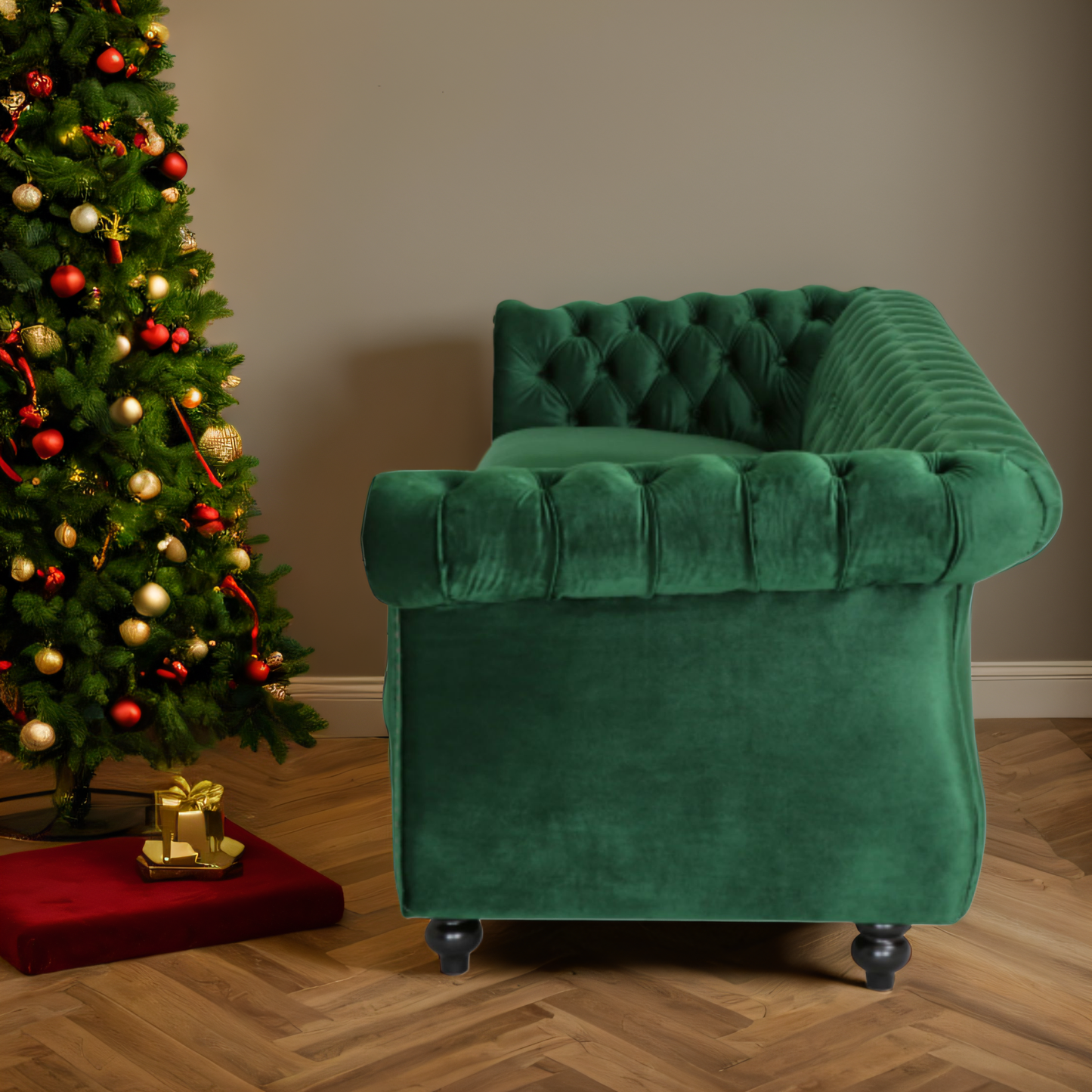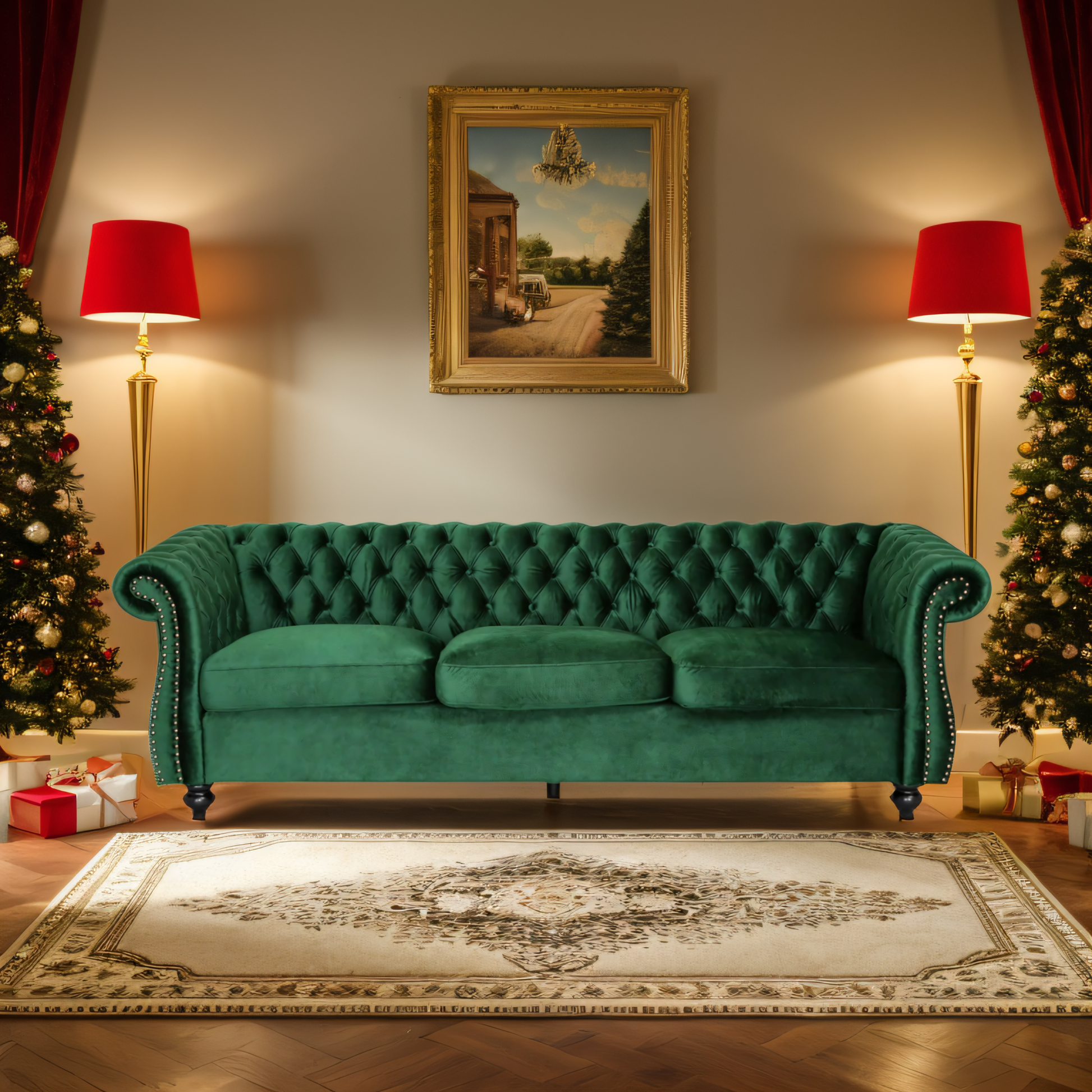 [SantaChoice] Durable 3-Seater Emerald Velvet Sofa, Combining Luxurious Comfort with Christmas Design, Perfect for Elegant Living Spaces, Featuring Plush Upholstery for Relaxation and a Touch of Sophisticated Style