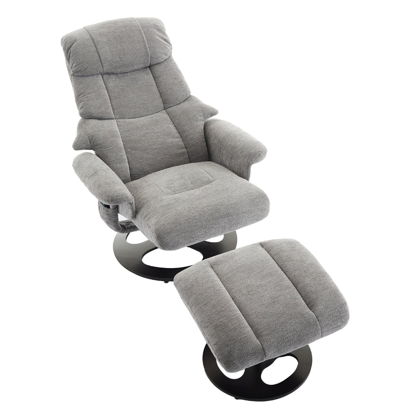 010-Ergonomic Recliner Chair with Ottoman, Modern 360° Swivel Lounge Chair with Footstool, Chenille Fabric, 5 Point Vibration Massage, Seat Heating & 140° Adjustable Backrest for Home or Office, Grey