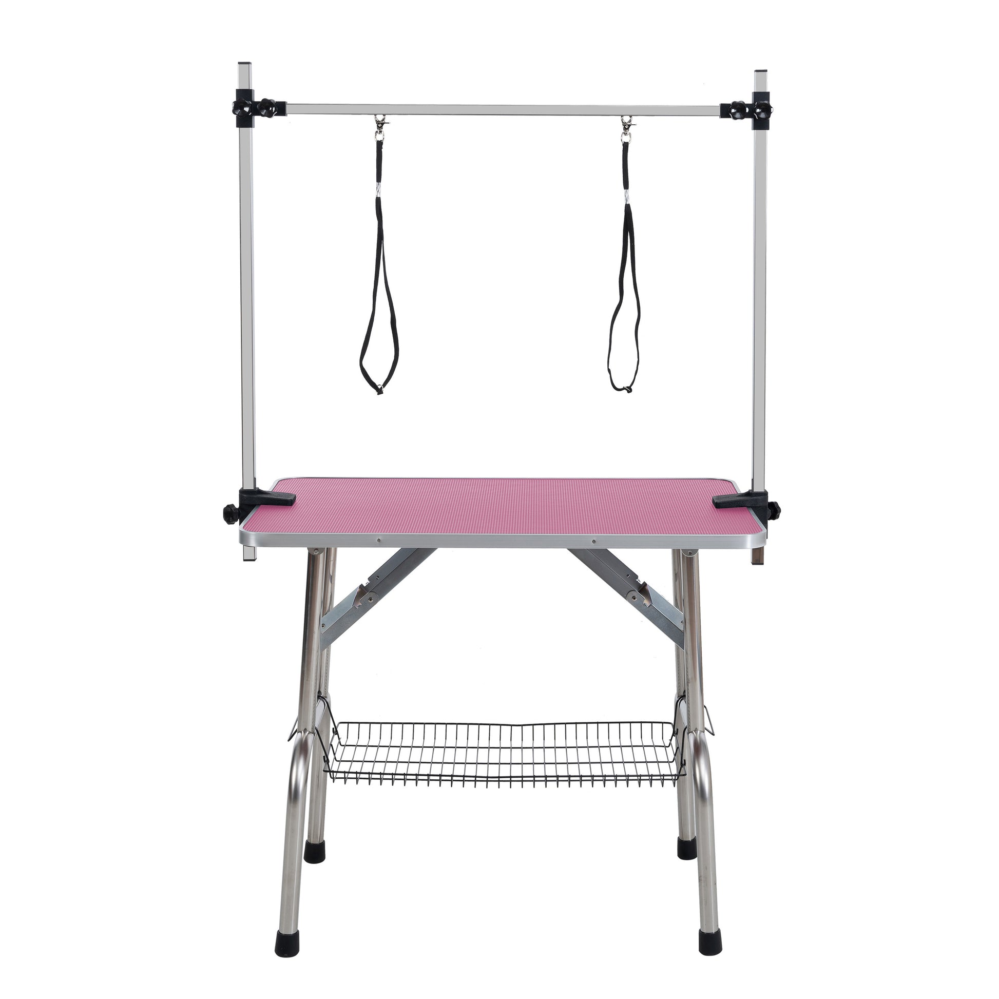 36" Folding Dog Pet Grooming Table Stainless Steel Frame Rubber Mat on Board with Adjustable Arm and Clamps pet dog Cat Grooming Table (PINK COLOR)
