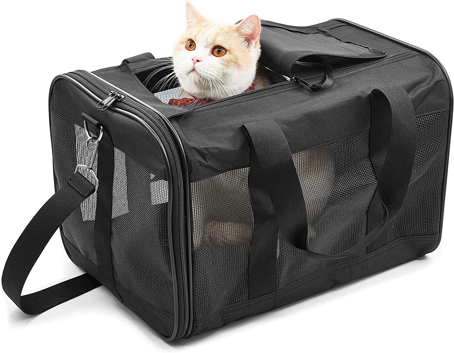 4 Way Expandable Pet Carrier, Airline Approved Collapsible Cat Soft-Sided Carriers W/Removable Fleece Pad For Cats, Puppy, Small Dogs