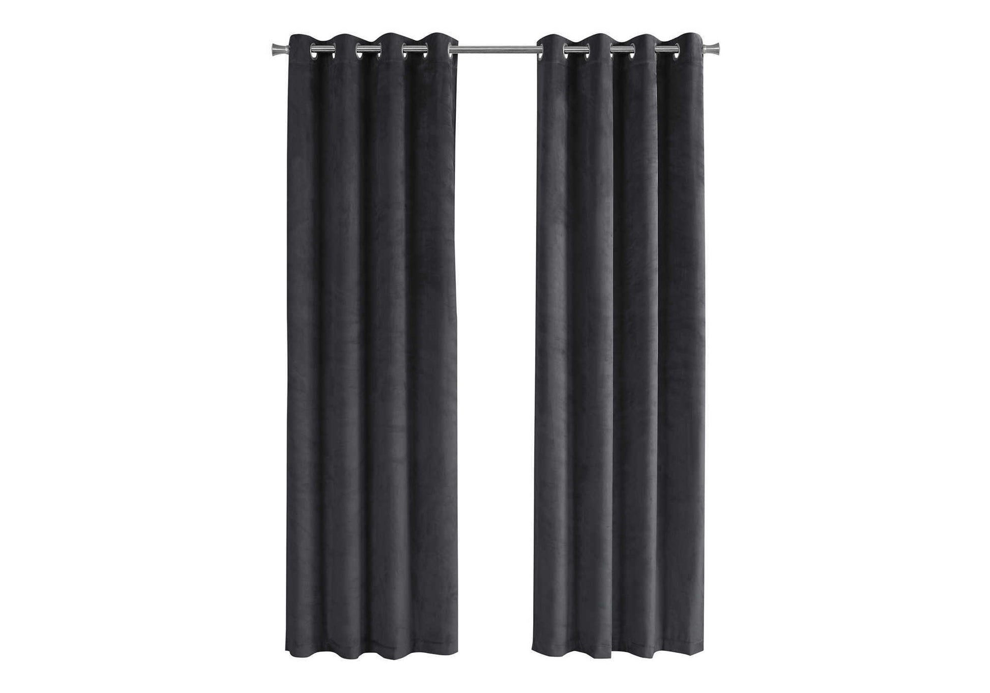 - Machine washable room darkening curtain panels in a soft, grey velvet finish