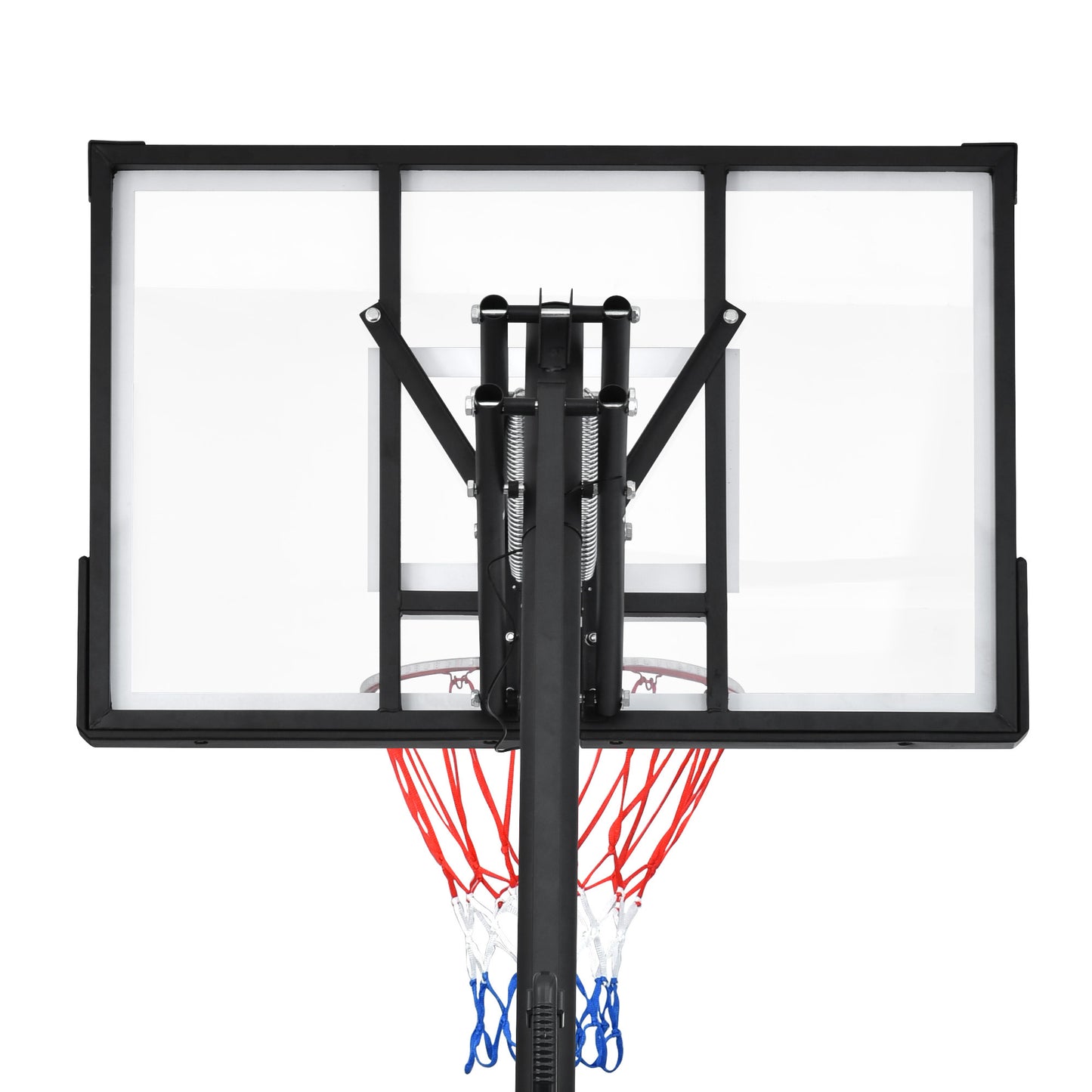 - [Durable & Sturdy]The basketball hoop & goal has edge protection design backboard(Backboard Dimensions:43.3"x29.6") and shock-absorbing bumper. What's more, the basketball hoop has multiple screws to fix the backboard and rust-proof main shaft, to ensure the basketball goal more durable and sturdy when using indoor or outdoor