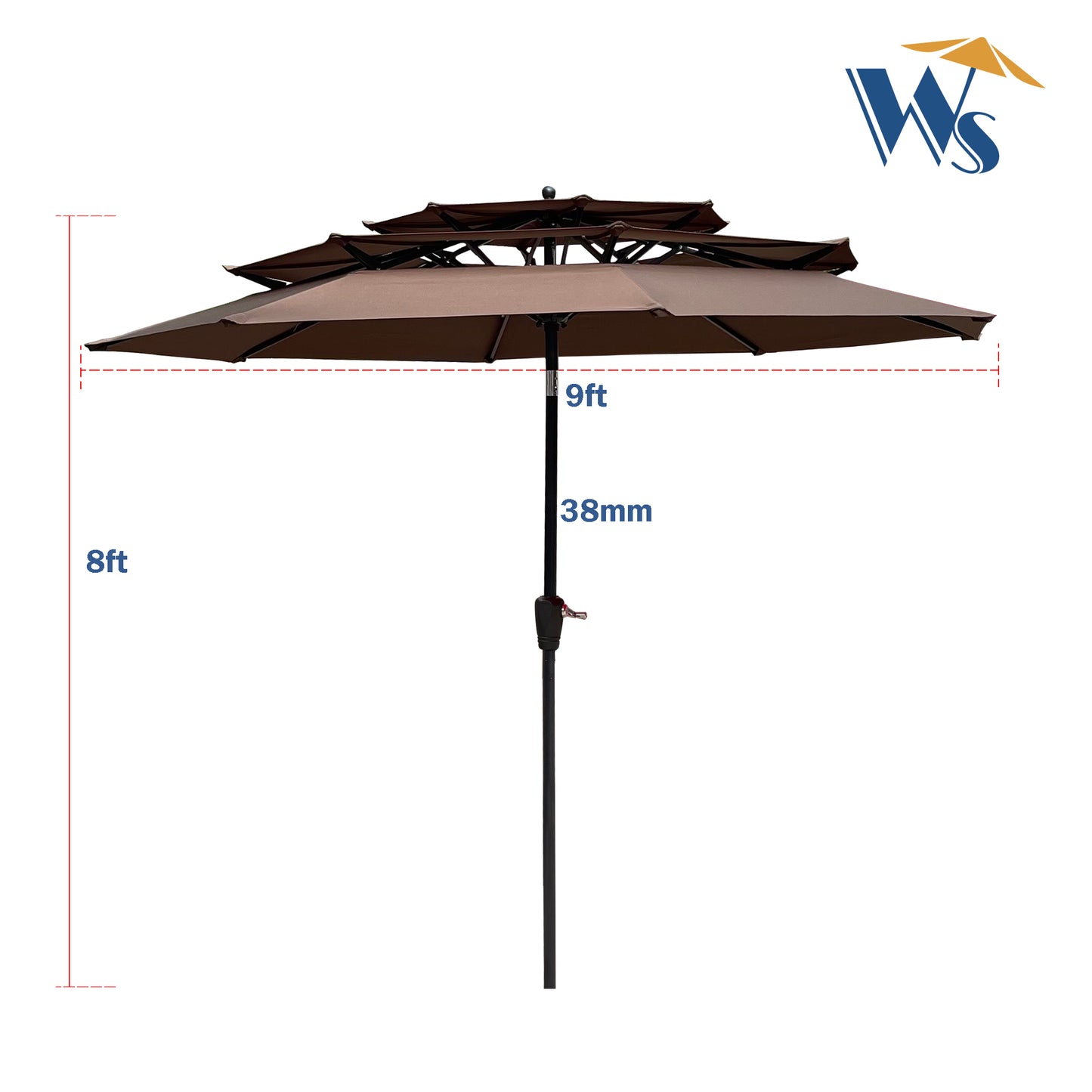 | Package Includes: | 1 x 9Ft 3-Tiers Outdoor Umbrella; 1xInstruction |