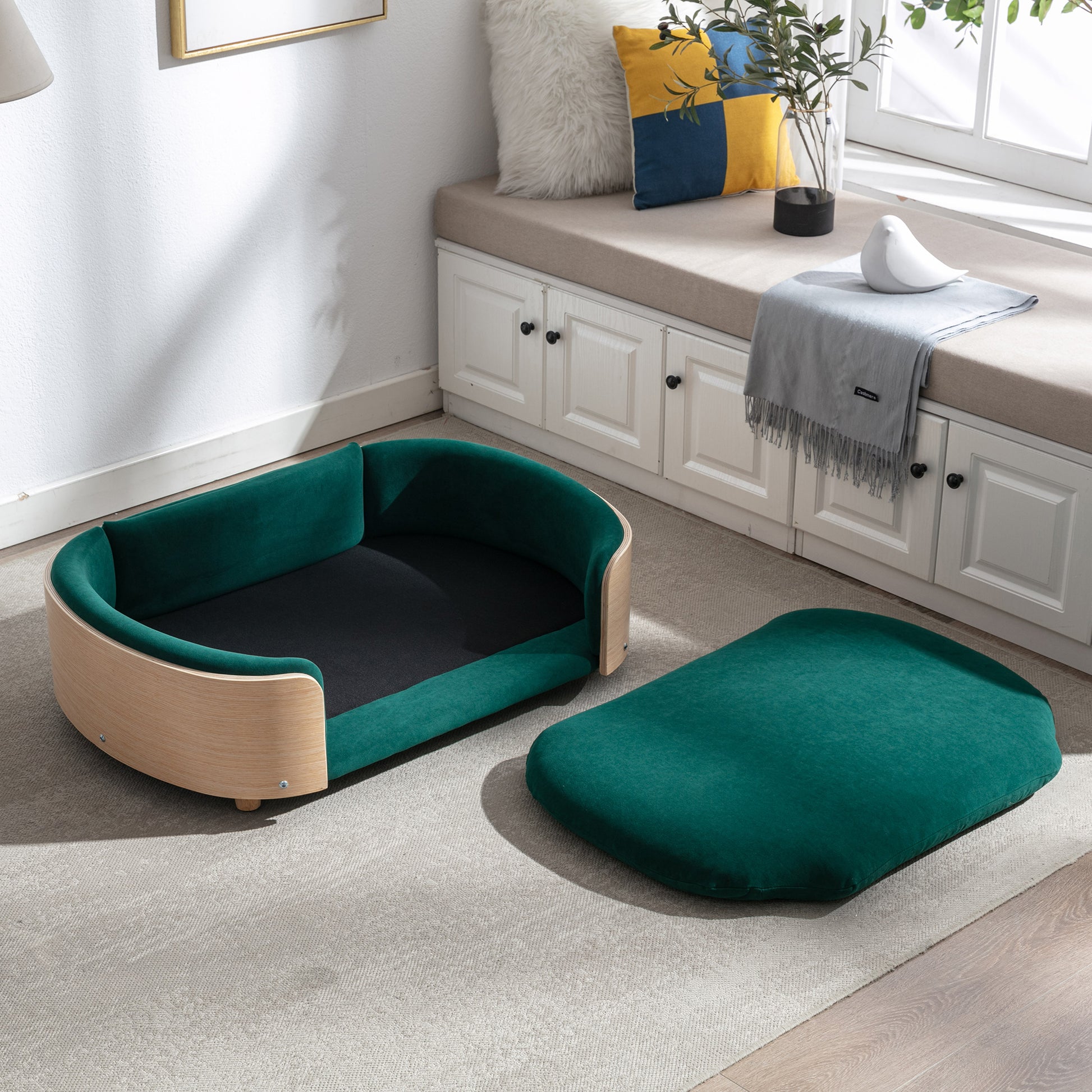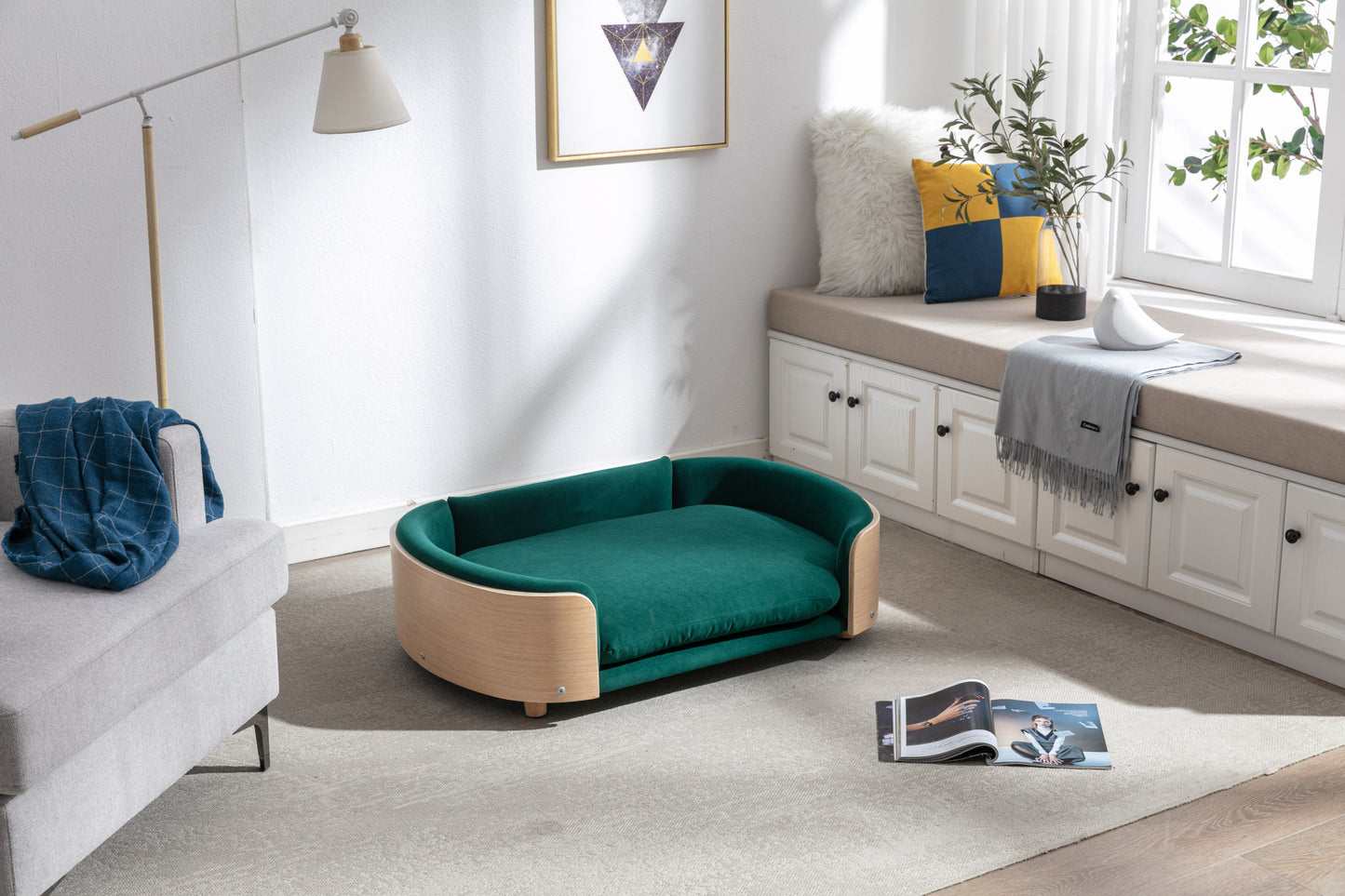 Scandinavian style Elevated Dog Bed Pet Sofa With Solid Wood legs and Bent Wood Back, Velvet Cushion,Large Size
