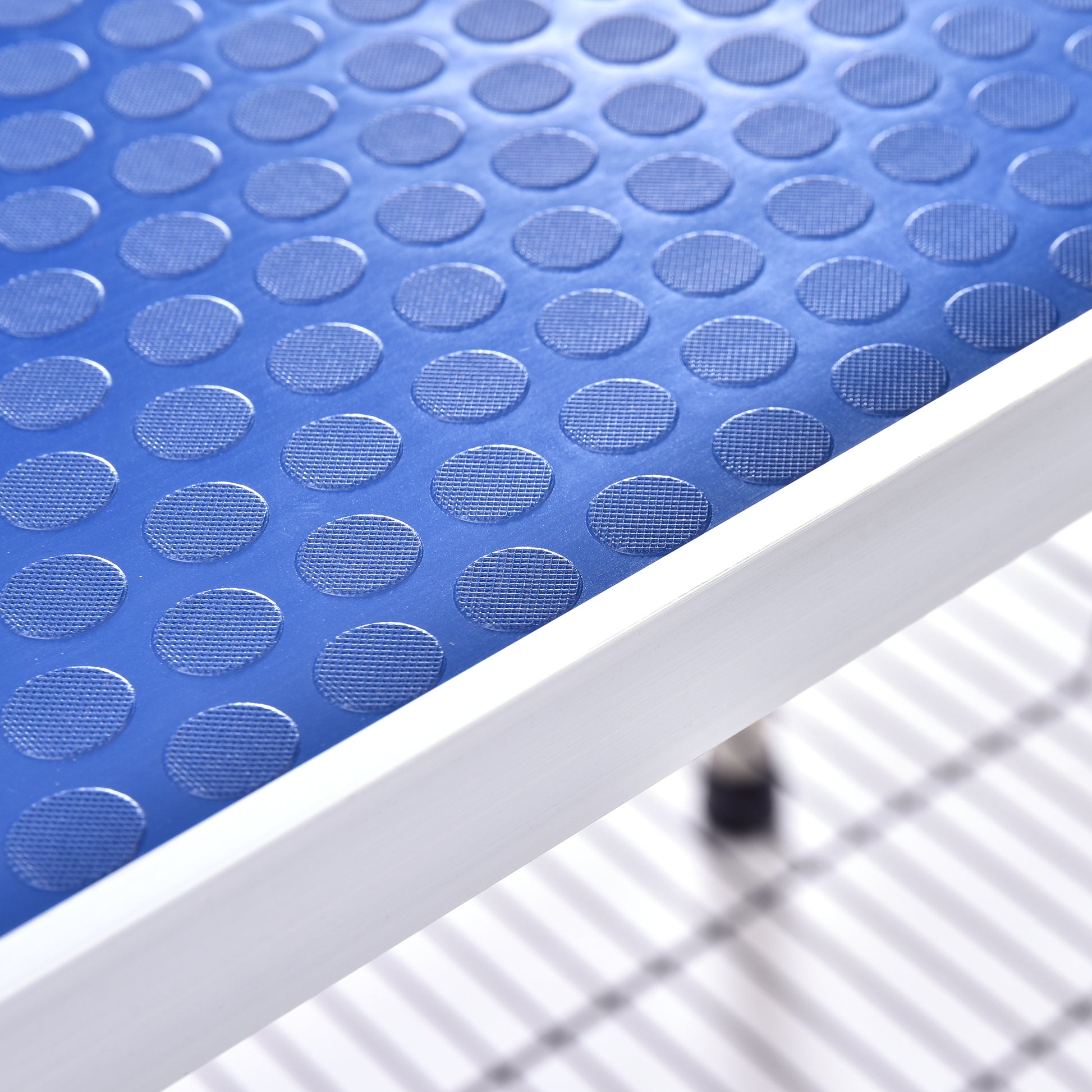 - The table board is ribbed rubber surfaced which ensures the pets' safety. Static-free board with skid resistance makes it easy to clean.
