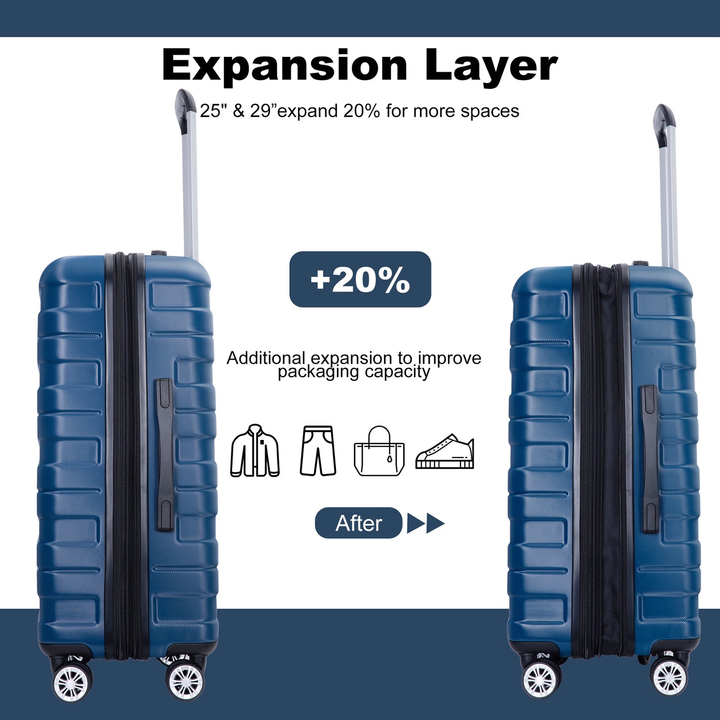 3 Piece Luggage Sets PC Lightweight & Durable Expandable Suitcase with Two Hooks, Double Spinner Wheels, TSA Lock, (21/25/29) Dark Blue