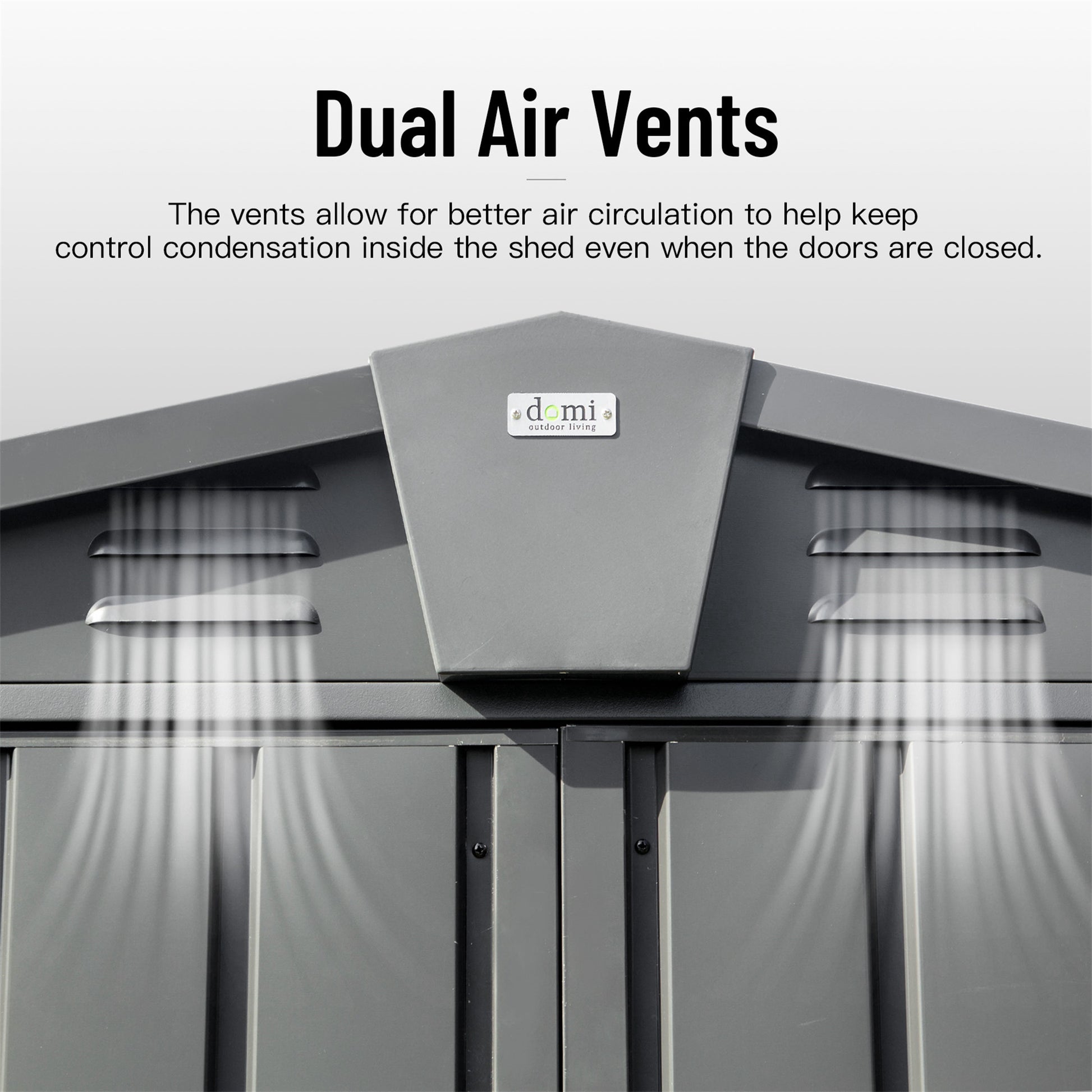 - High-quality Material: The tool shed is made of high-quality galvanized metal, which is anti rust and corrosion. Leak resistant top with tight construction, and thick walls with dent resistant durability enable it to last for many years without maintaining.