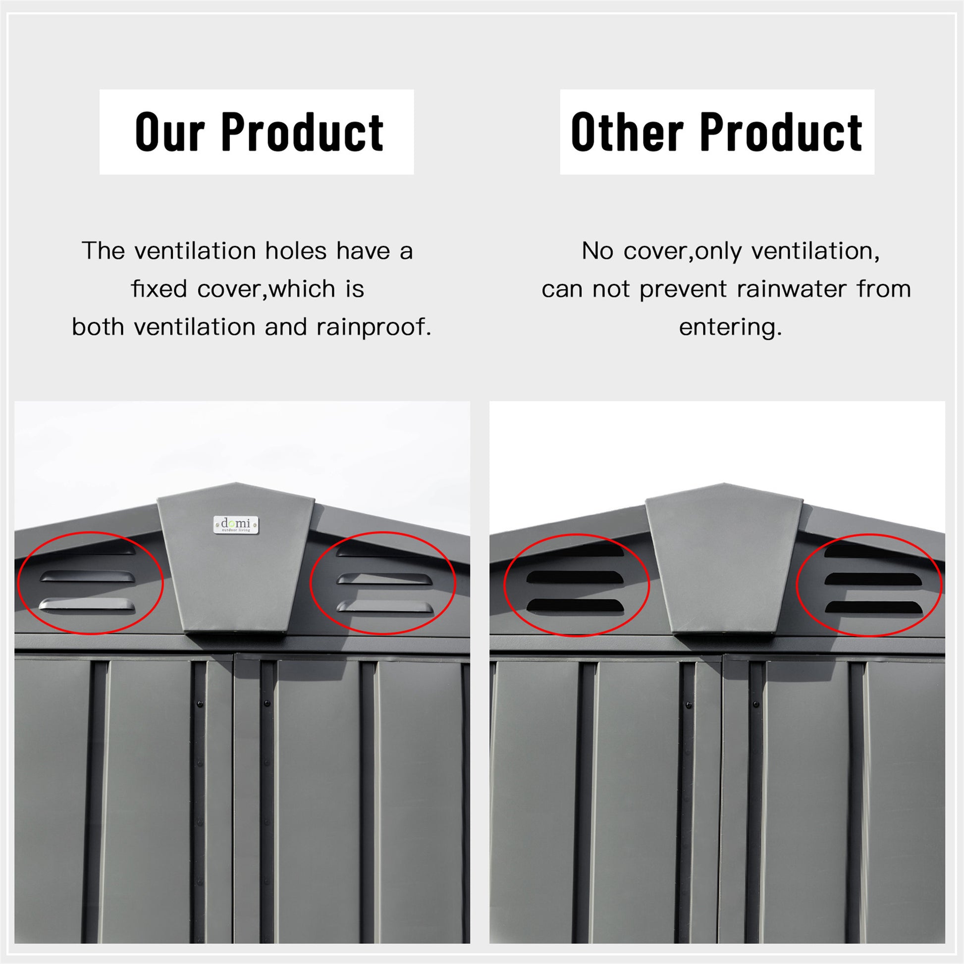 - Gable Sloping Roof Design: The roof adopts groove and slop design that allows rain to flow down quickly and avoid water builds up, protecting your stuff in thunderstorm weather.