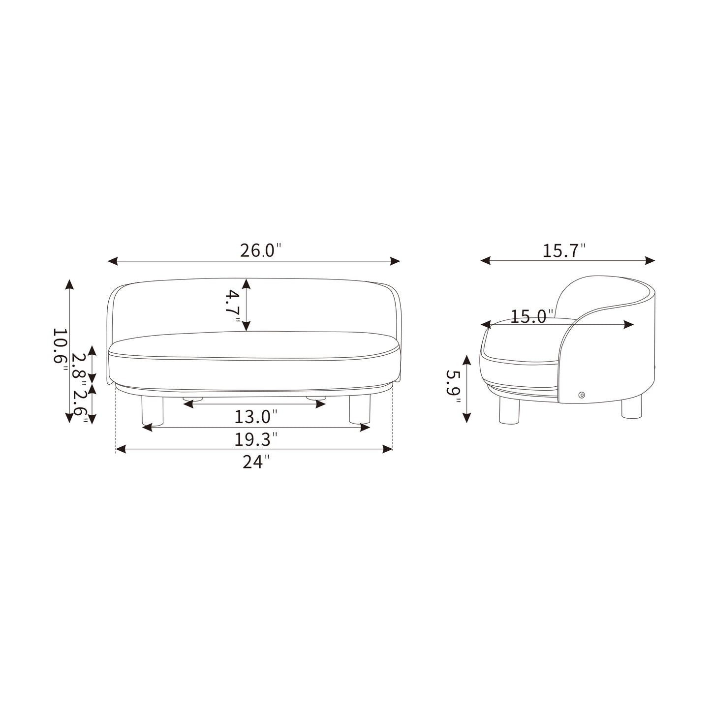 Scandinavian style Elevated Dog Bed Pet Sofa With Solid Wood legs and Bent Wood Back, Velvet Cushion, Walnut