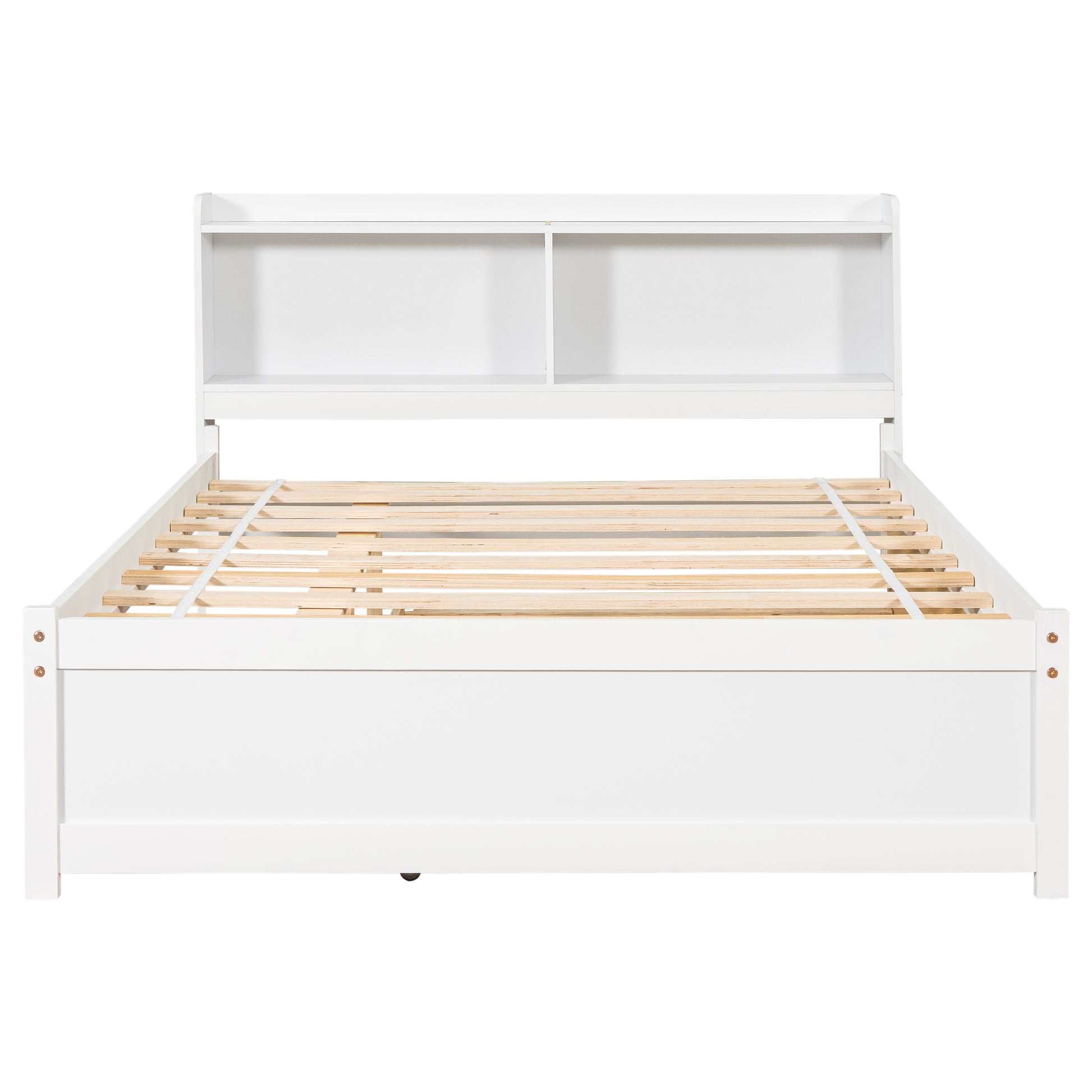 - [Storage Headboard] The multifunctional bookshelf integrated into the headboard contains distinct compartments that can be used to decorate and store books, toys, lamps and other accessories. This intelligible design saves the extra space and cost for the need of a bedside cabinets, and it's the perfect solution for small living space-transforming a small chaotic space to a neat and fascinating bedroom.