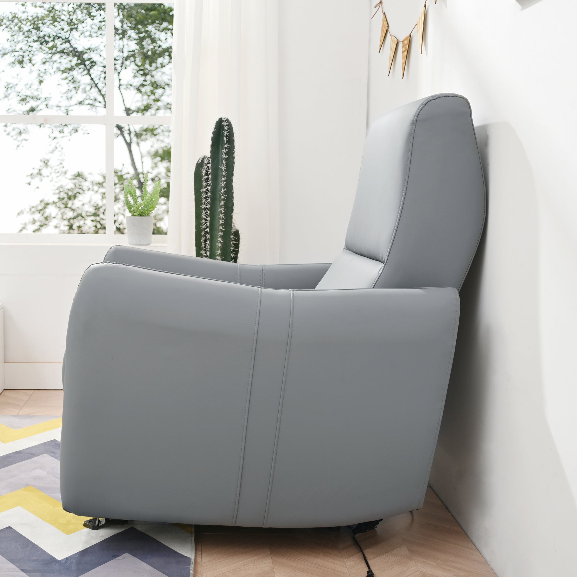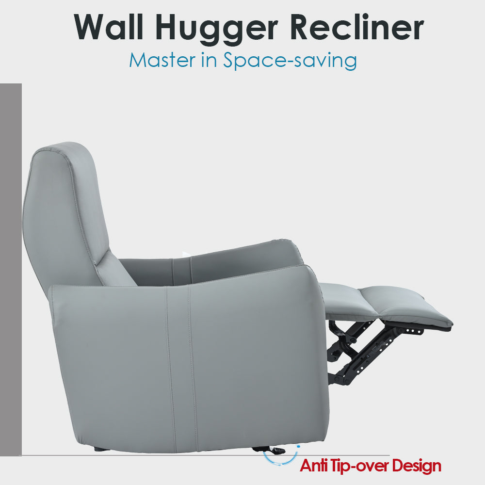 Wall Hugger Recliner,Power Recliner Chair,Electric Recliner for Living Room,PU Leather Reclining Armchair for small space,Reclining Sofa for Bedroom/Apartment/RV,with USB Port(Type-C) (Blue-Gray)