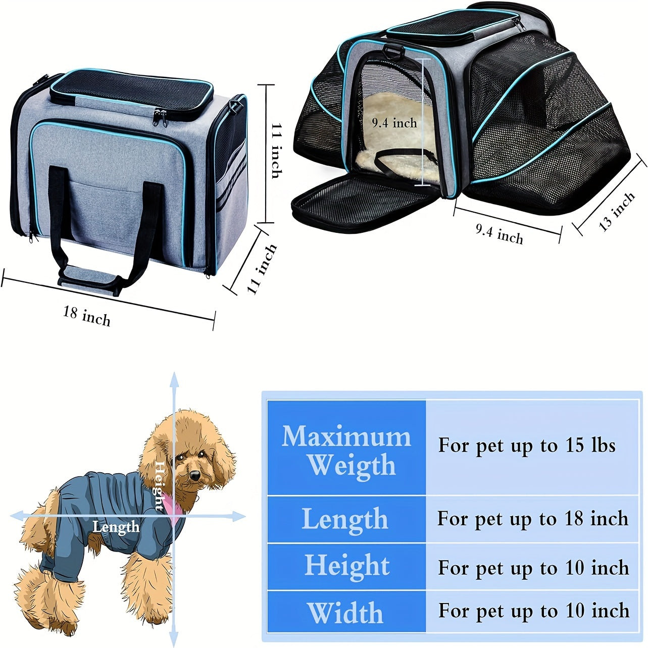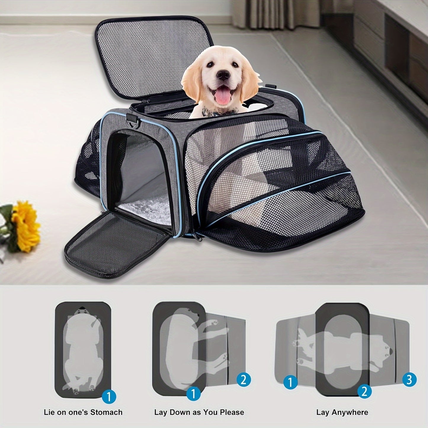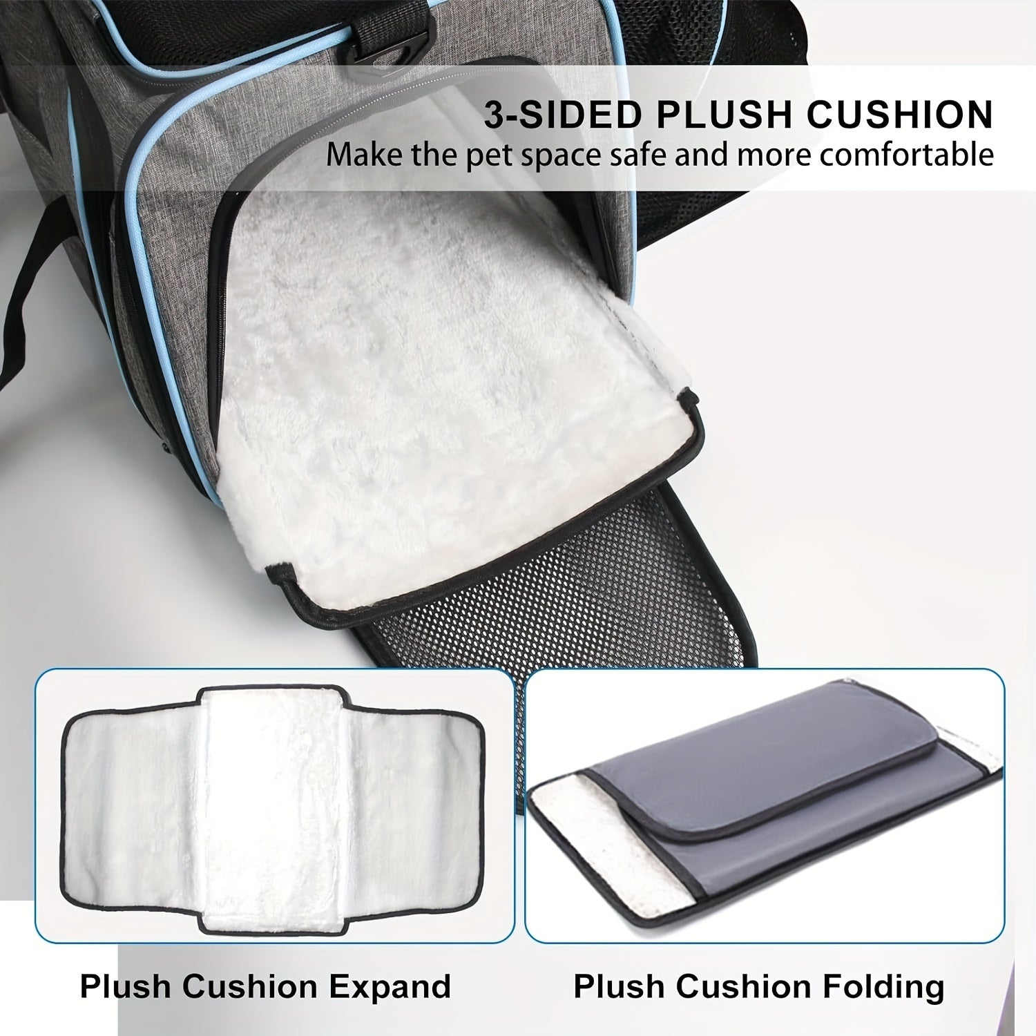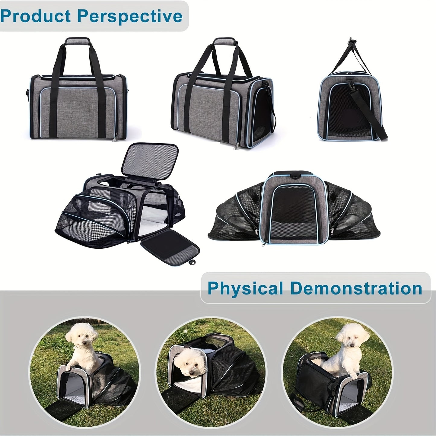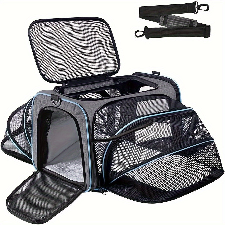 4 Way Expandable Pet Carrier, Airline Approved Collapsible Cat Soft-Sided Carriers W/Removable Fleece Pad For Cats, Puppy, Small Dogs