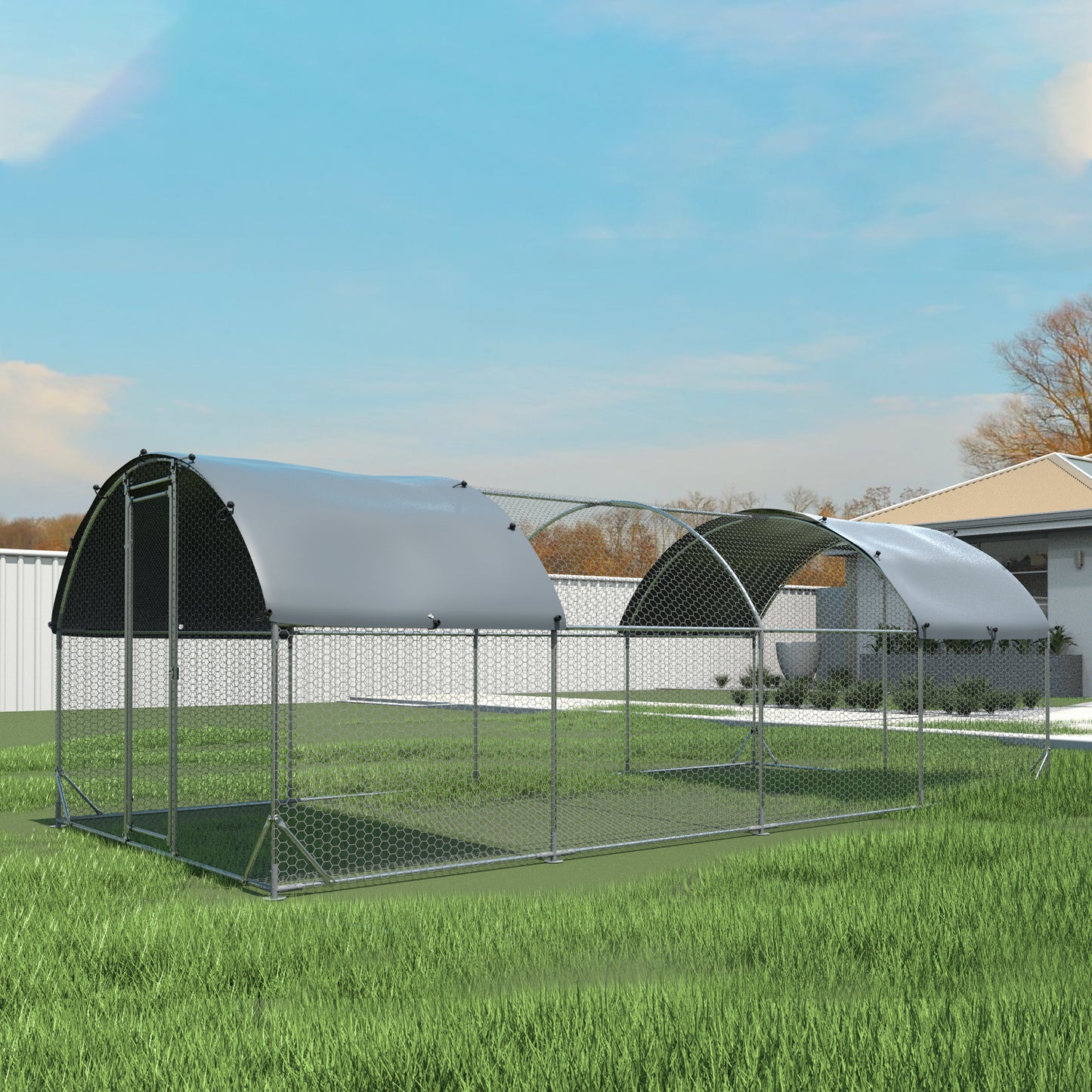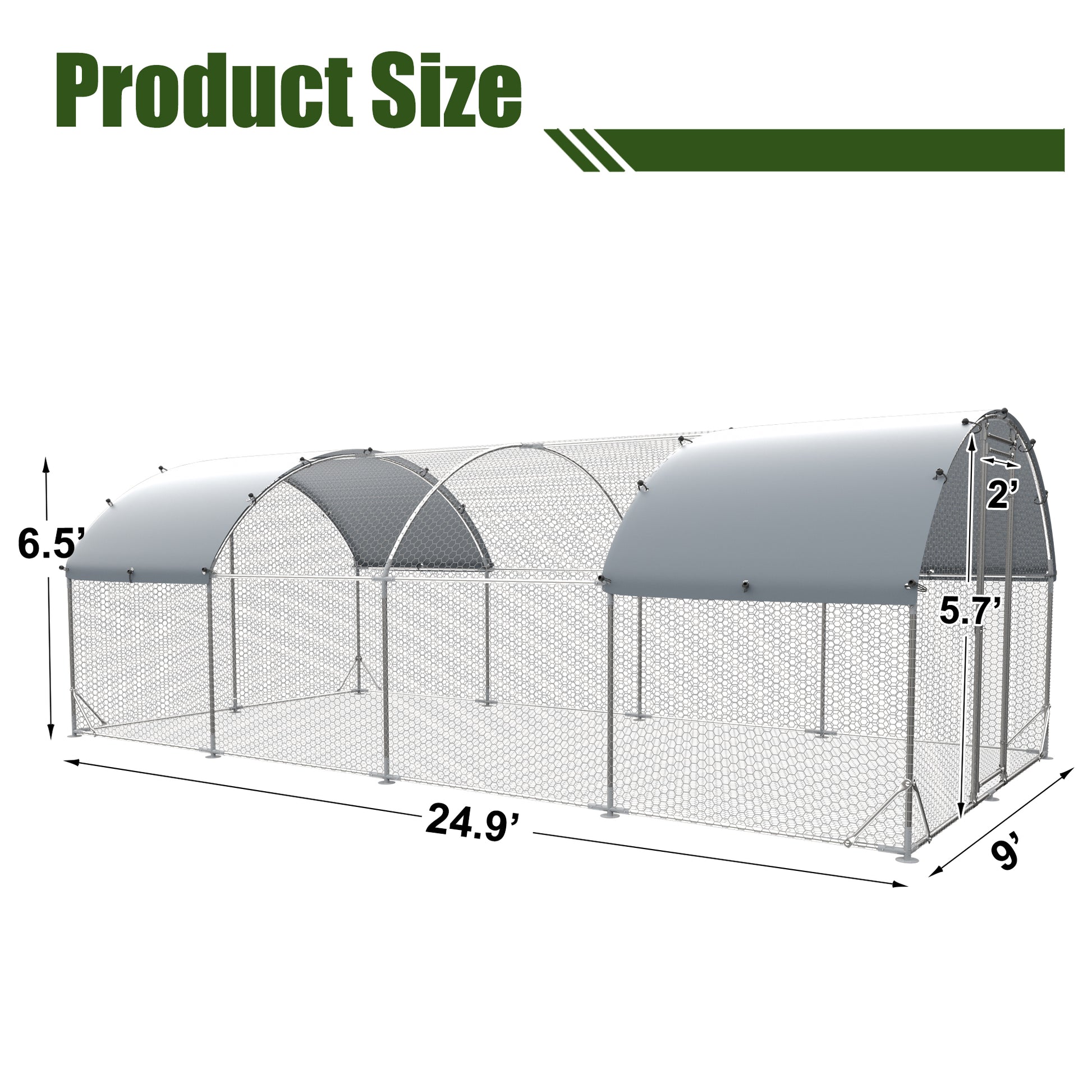 Large metal chicken coop upgrade three support steel wire impregnated plastic net cage, Oxford cloth silver plated waterproof UV protection, duck rabbit sheep bird outdoor house 9.2'W x 24.9'L x 6.5'H