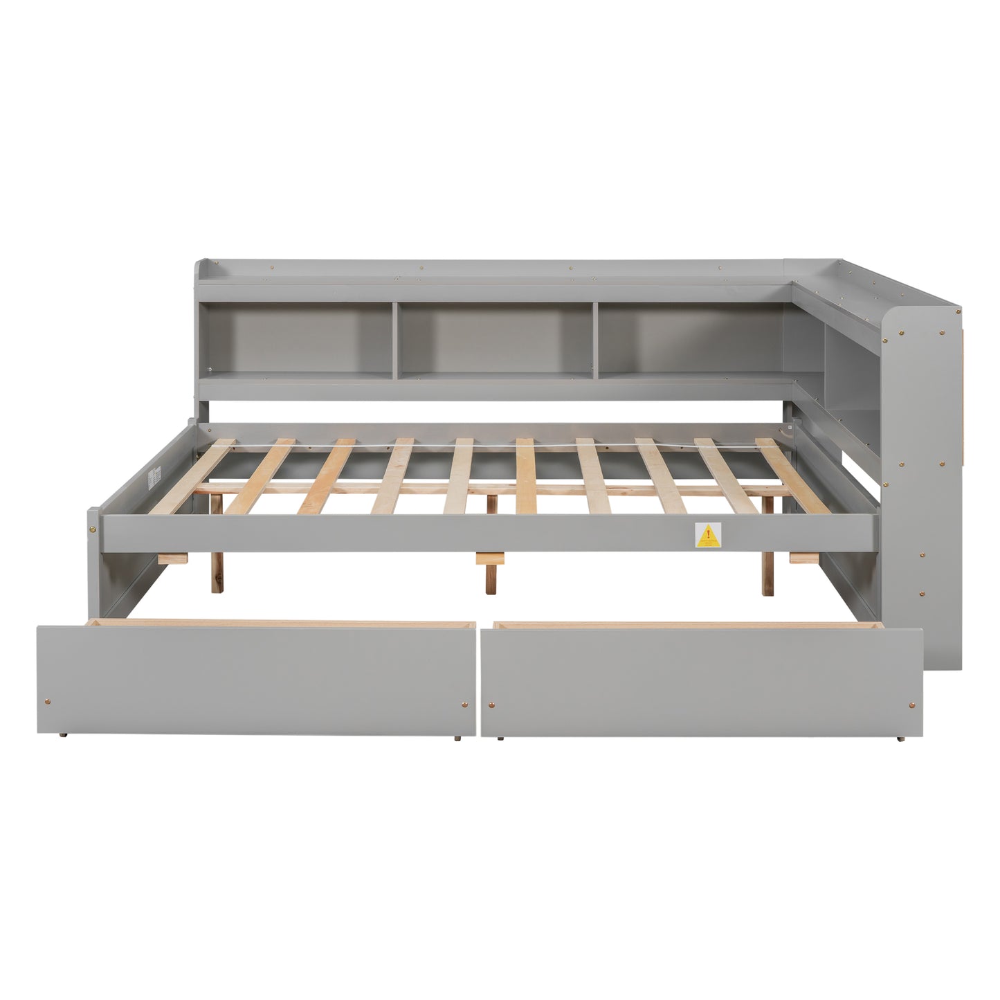 Full Bed with L-shaped Bookcases, Drawers ,Grey