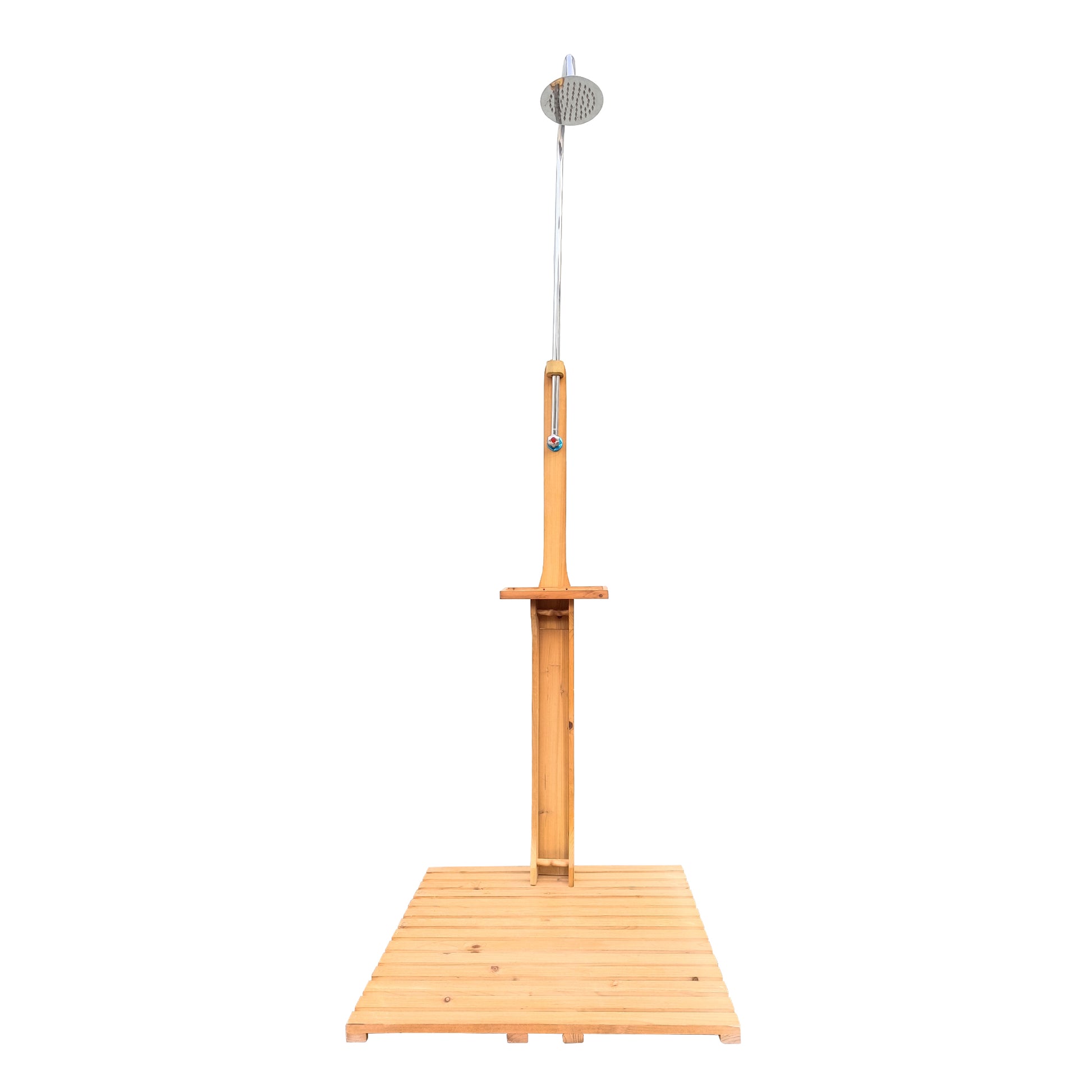 - The wooden garden shower is ideal to provide cool in backyard, camping or after outdoor swimming.