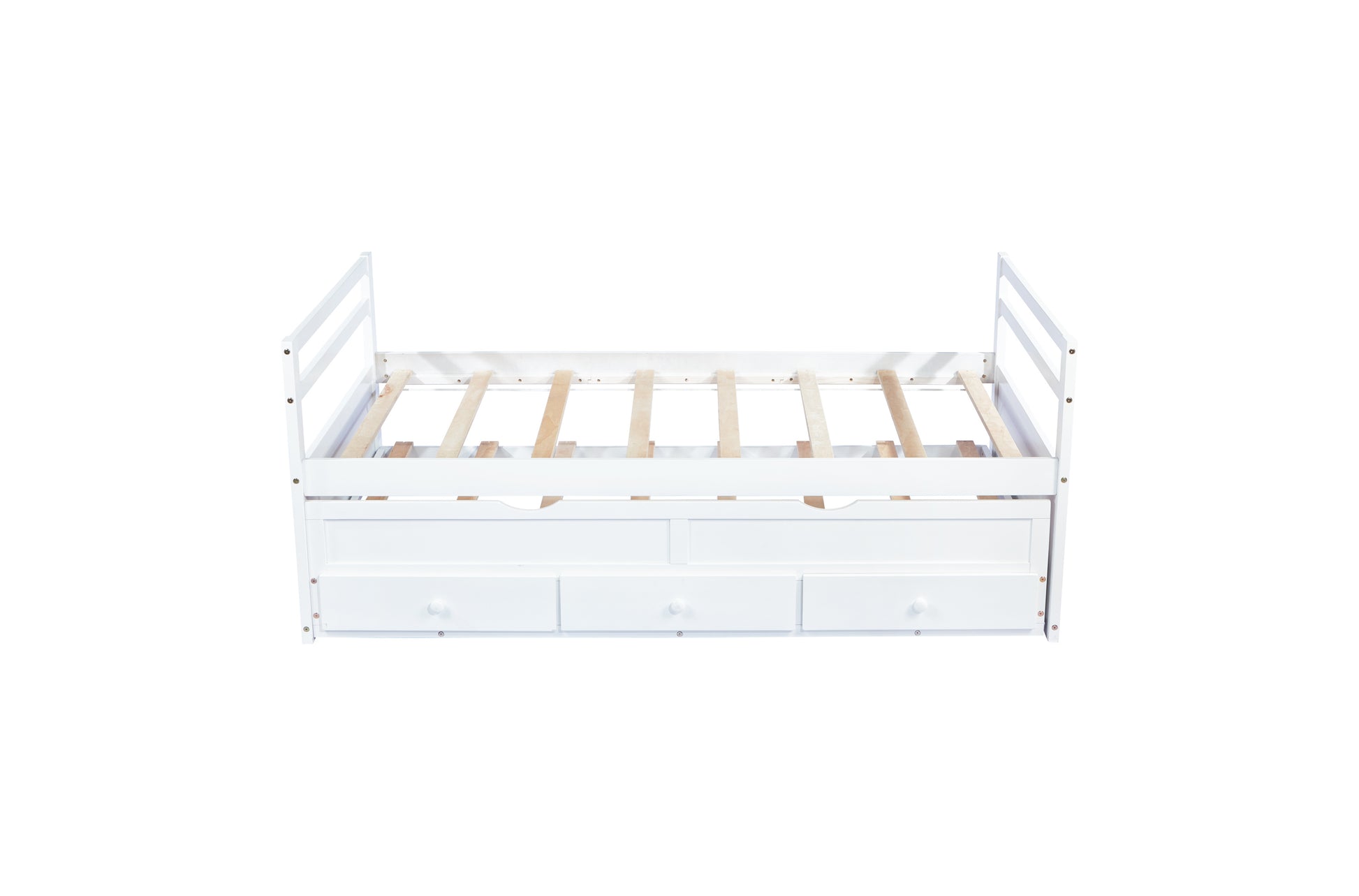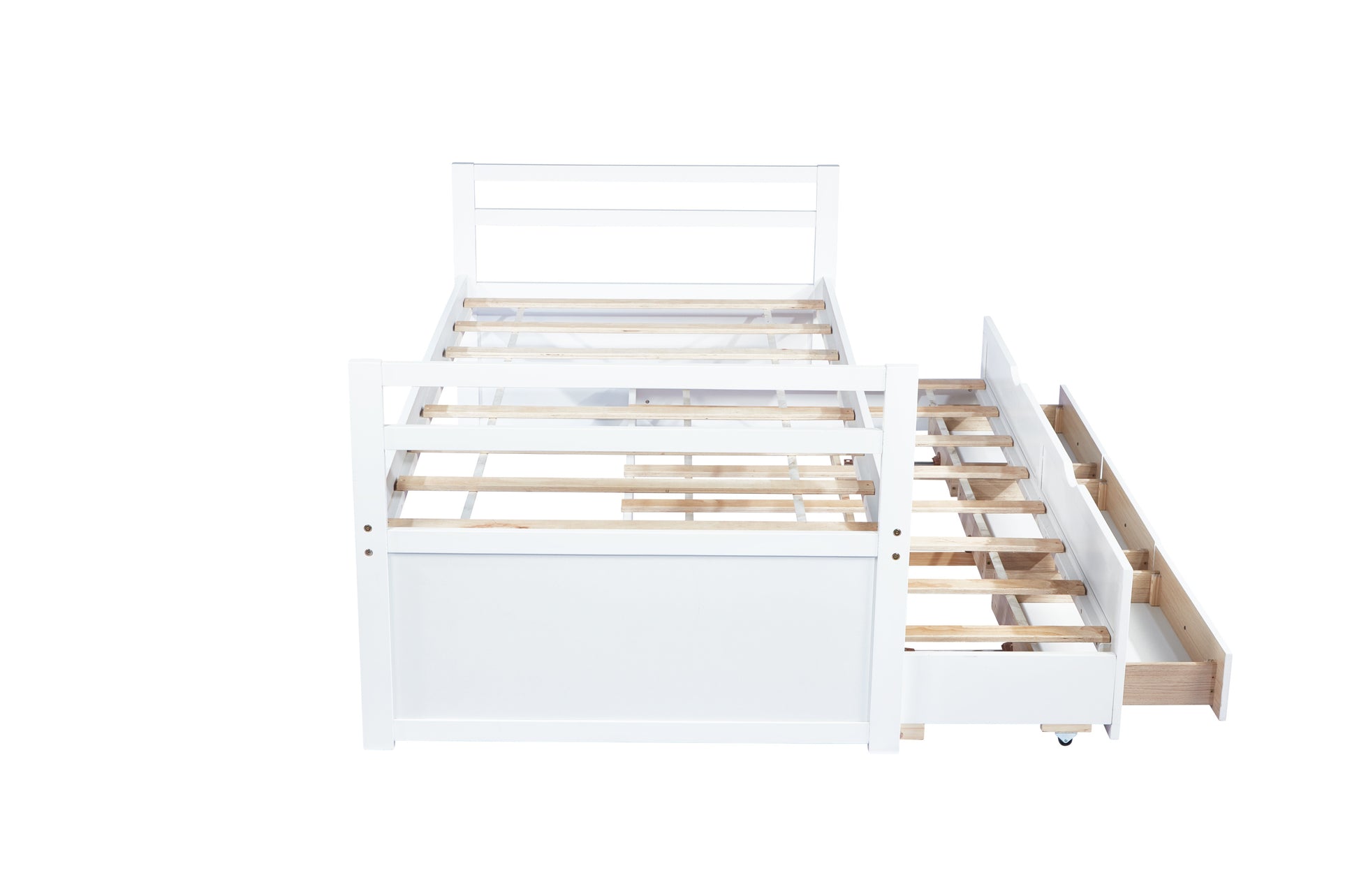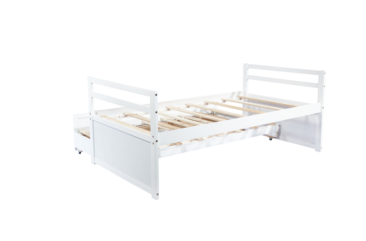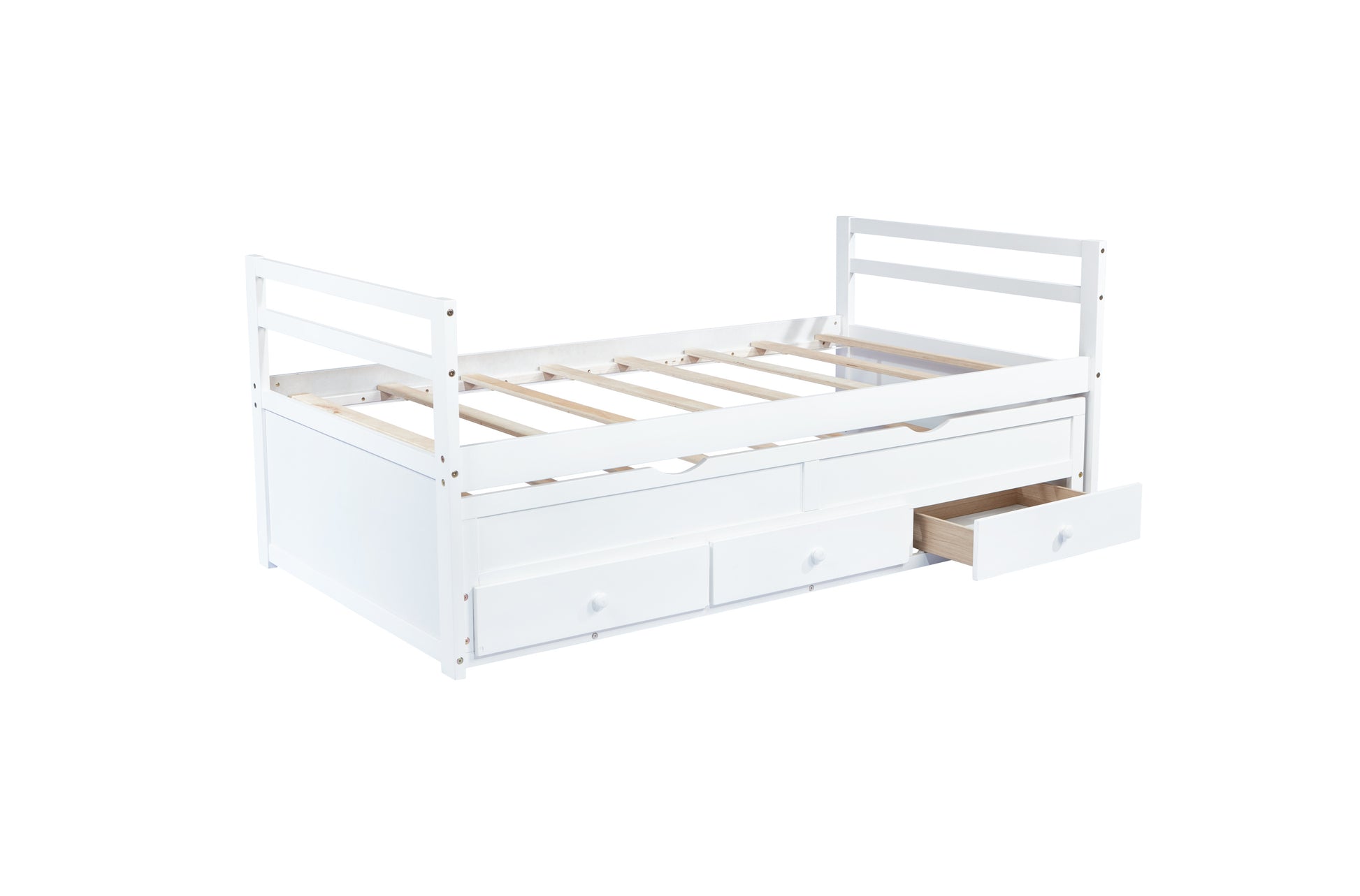 Twin Size Bed with Headboard, Footboard, Trundle and Three Storage Drawers, Twin Size Pine Wood Bed with Headboard, Footboard,White